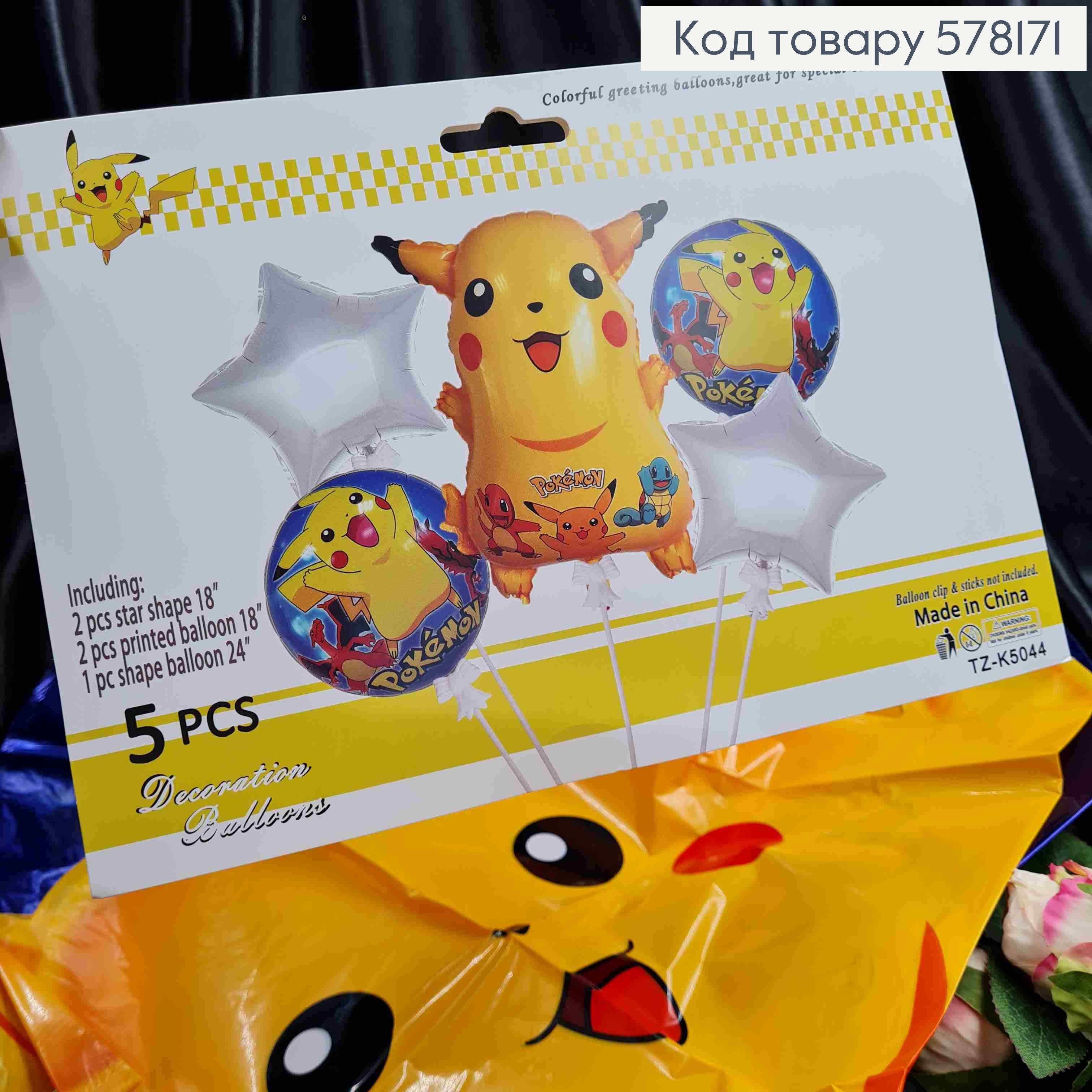 Набор фольгированных шаров "ПИКАЧУ", Пикачу 1шт, Круглые 2шт, Звезды 2шт