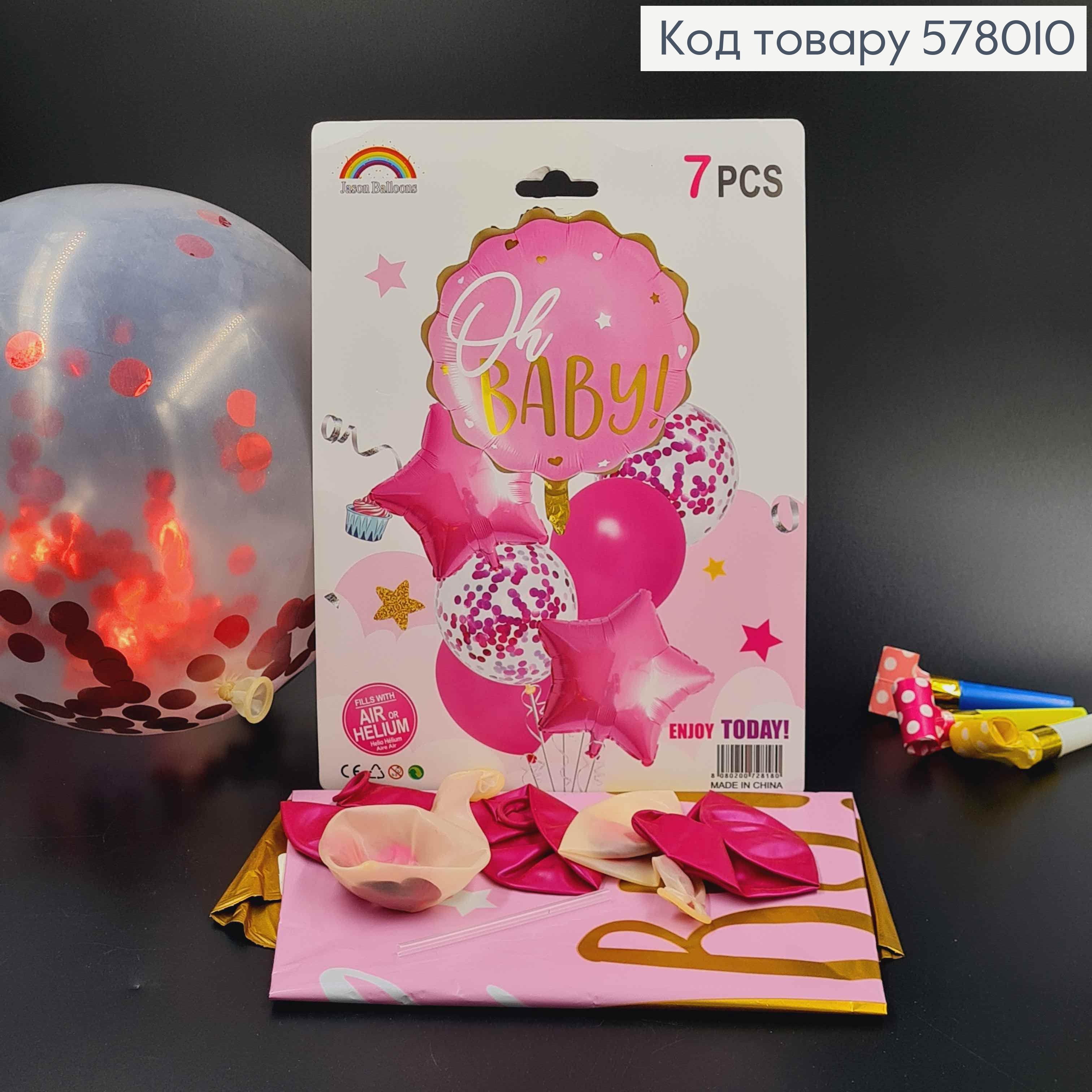 Набор фольгованных шаров Розовых "Oh Baby", 4шт+2шт+1шт