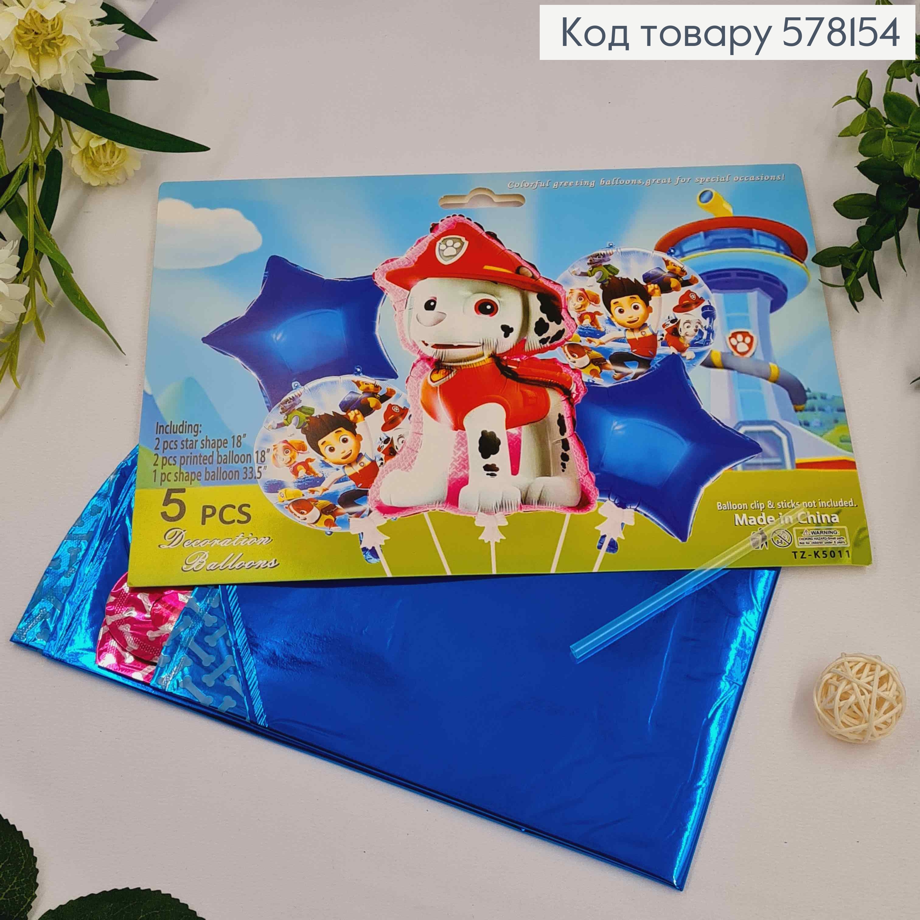 Набор фольгированных шаров "Щенячий патруль" Звездочки 2шт, Круглые 2шт, Маршал 1шт(33,5")