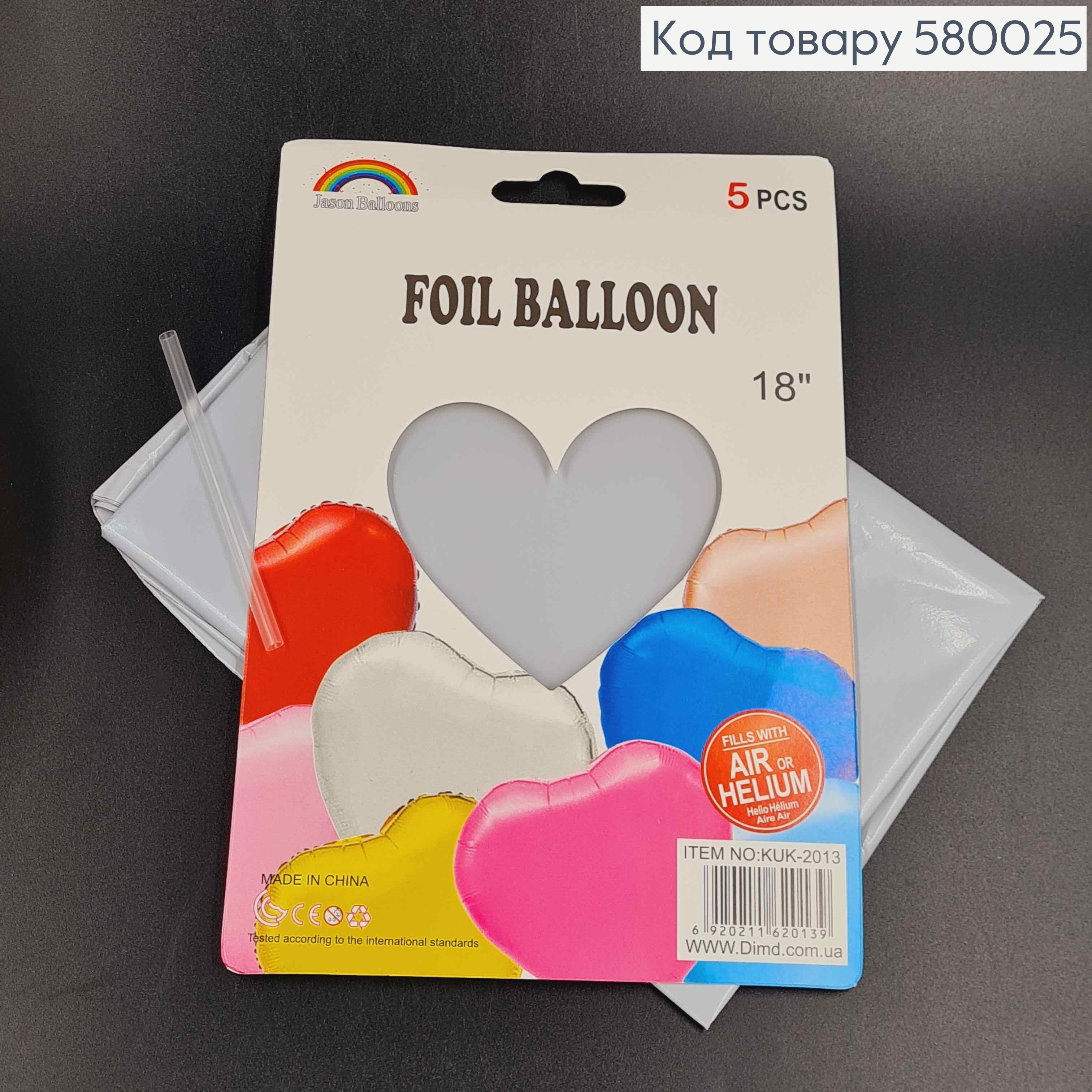 Набор фольгированных шаров Сердце(светло серый), 5шт 18''(45,7см)