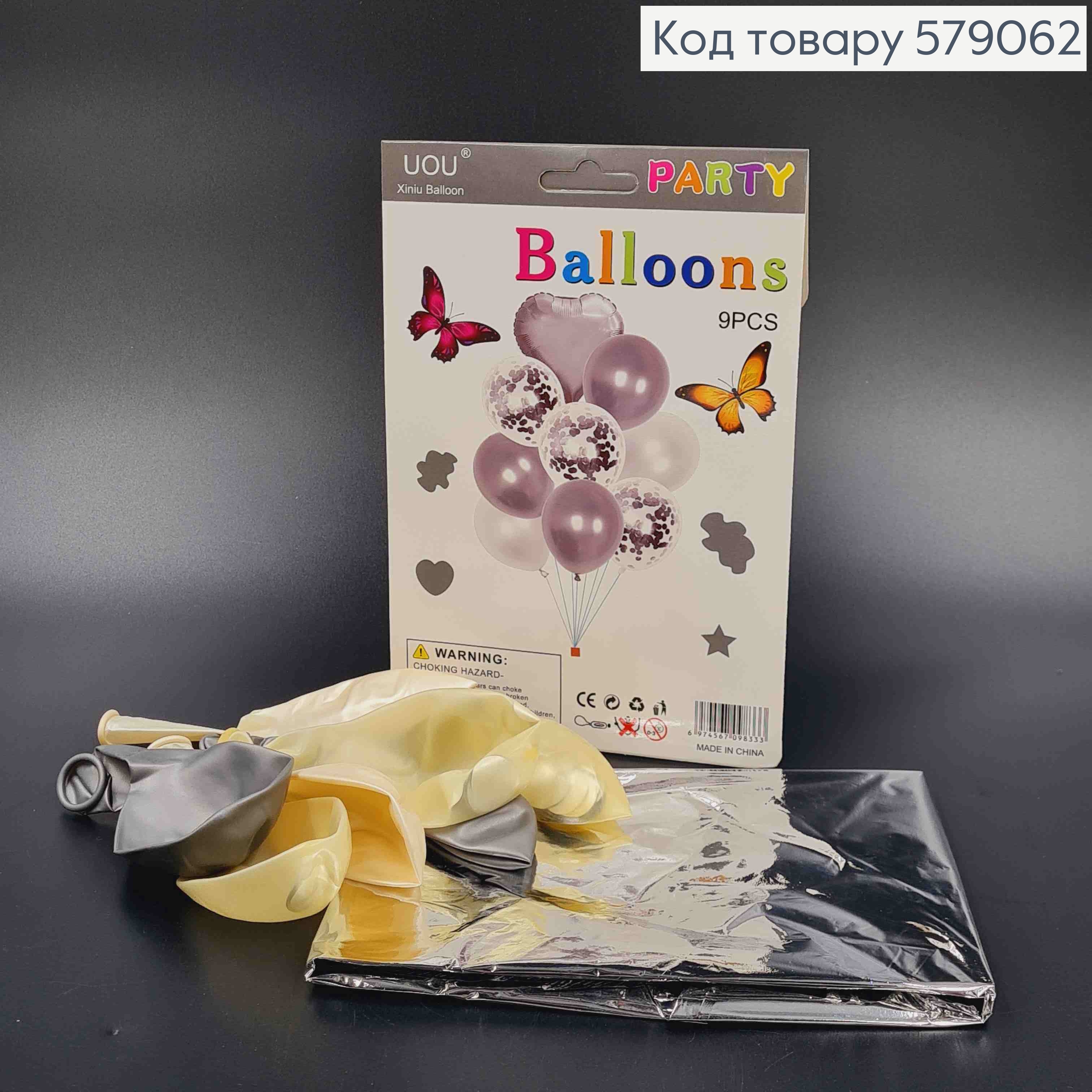 Набор фольгированных шаров Серебряных, 1шт(фольга), 3шт(с наполнением), 5шт(латекс)