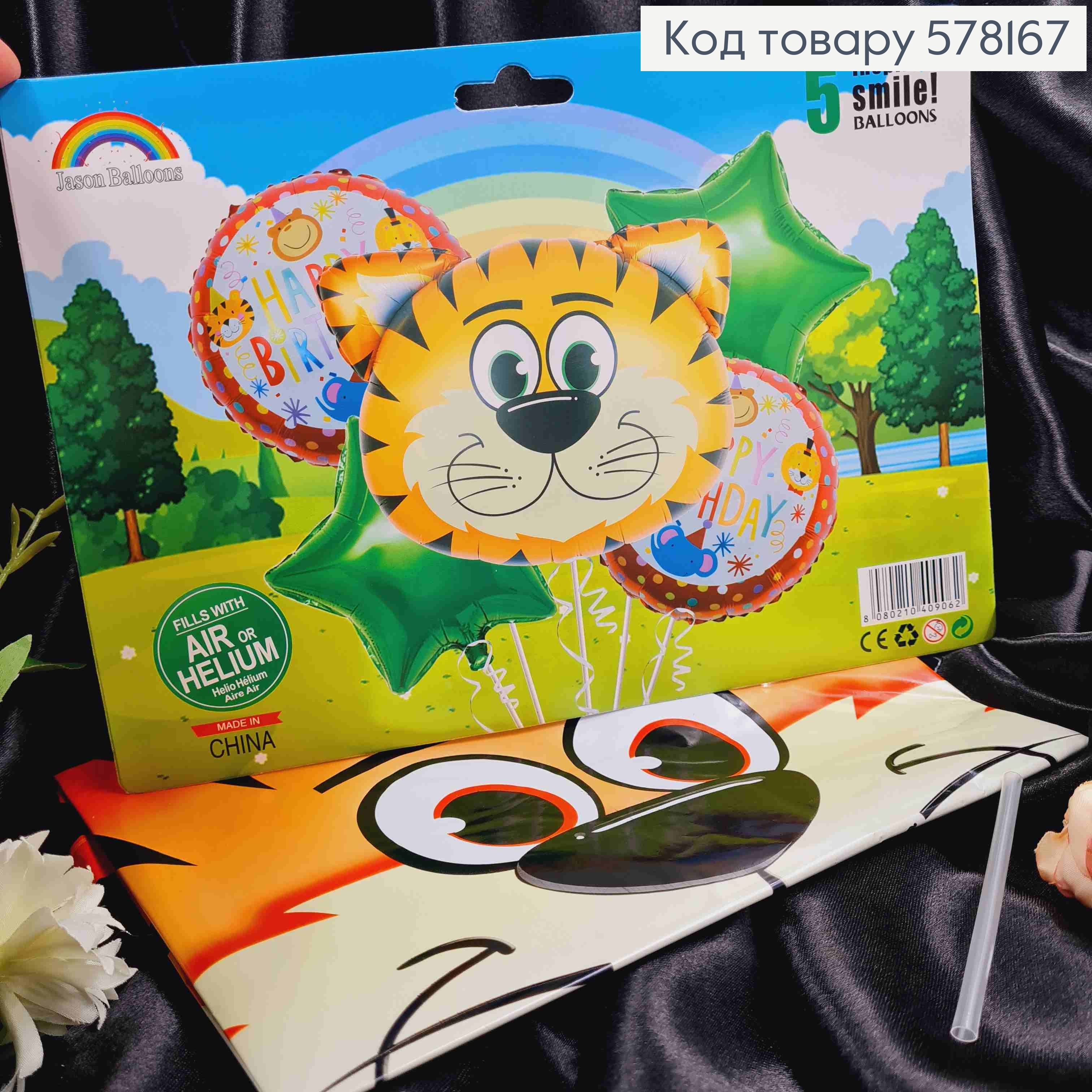 Набор фольгированных шаров "ТИГРЕНЯ", Тигренок 1шт, Круглые 2шт, Звезды 2шт
