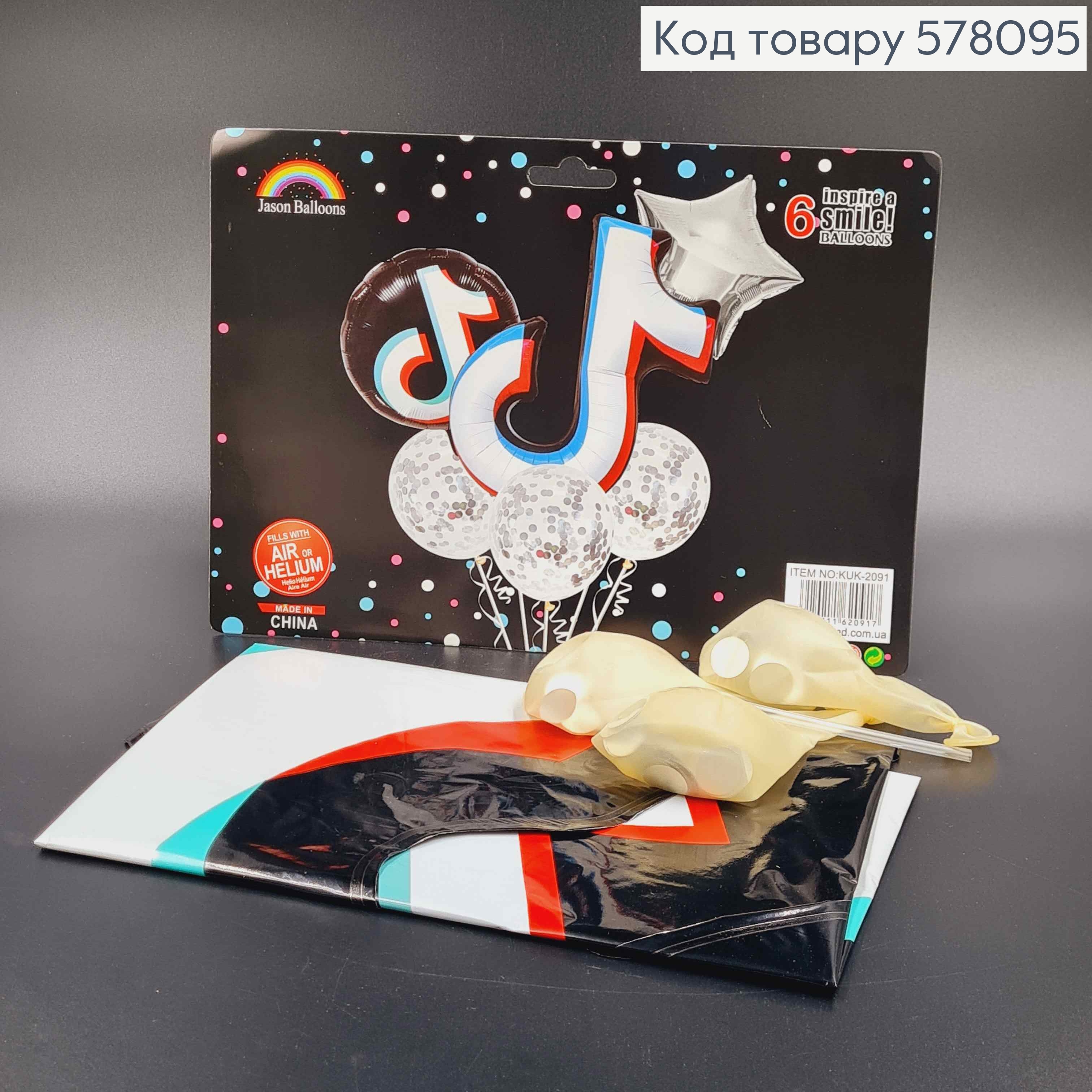 Набор фольгированных шаров "Тик ток" из серебряным конфети, 3шт(латексные)+2шт+1шт