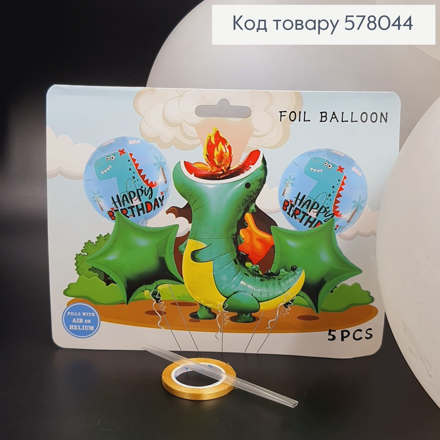 Набор фольгированных шаров "Зеленый Динозавр", 4шт+1шт(динозавр)