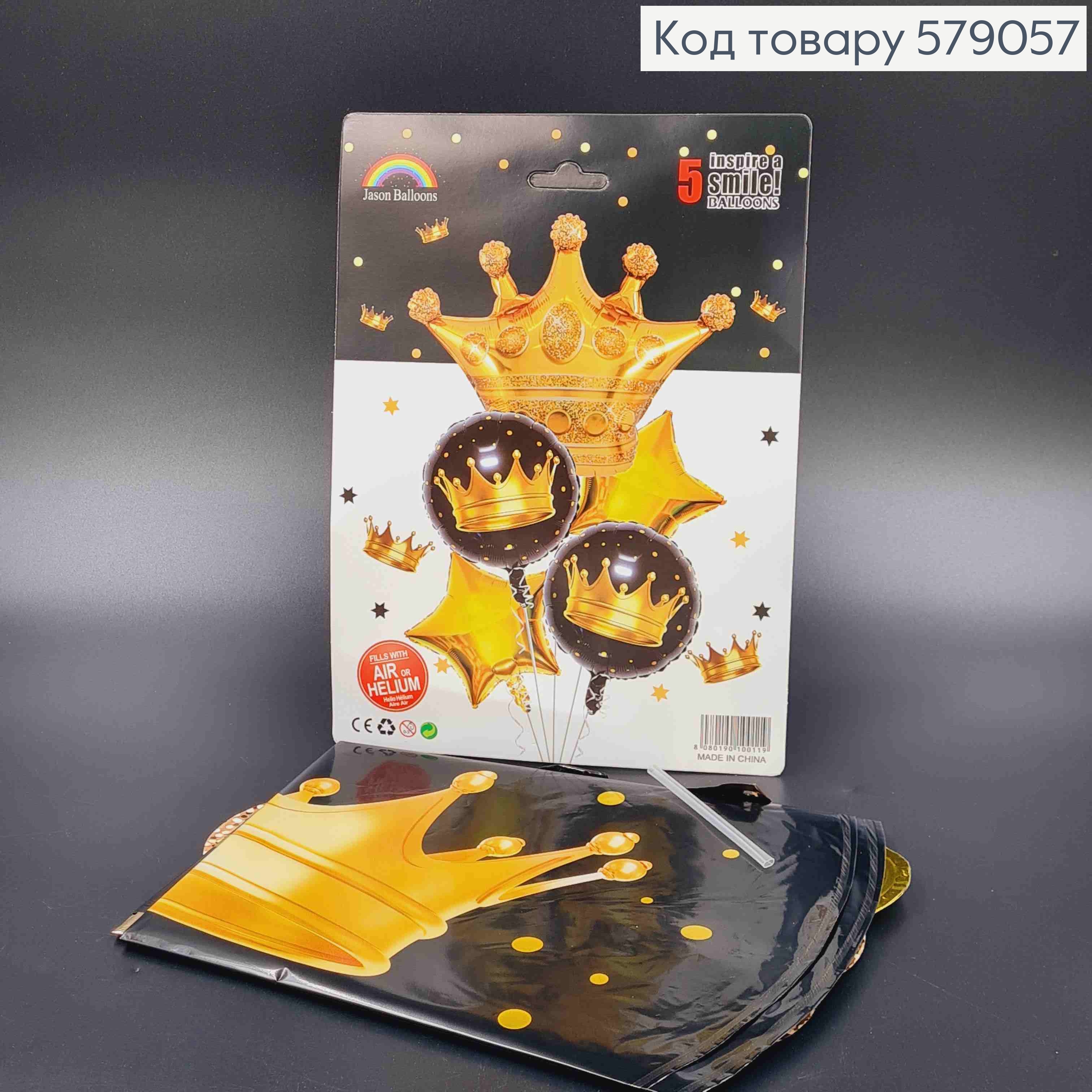 Набор фольгированных шаров, "КОРОНА", Звезды (2шт/18"), Корона (1шт/30''), Круглые (2шт/18") 580148 фото