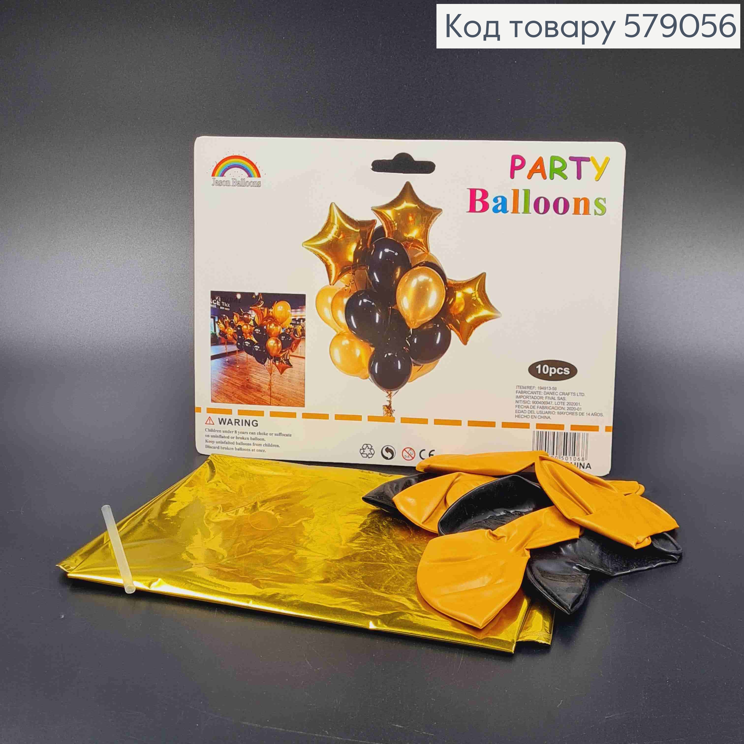 Набор фольгированных шаров Золотых звездочек, 3шт.(фольг.) 7шт(латекс)