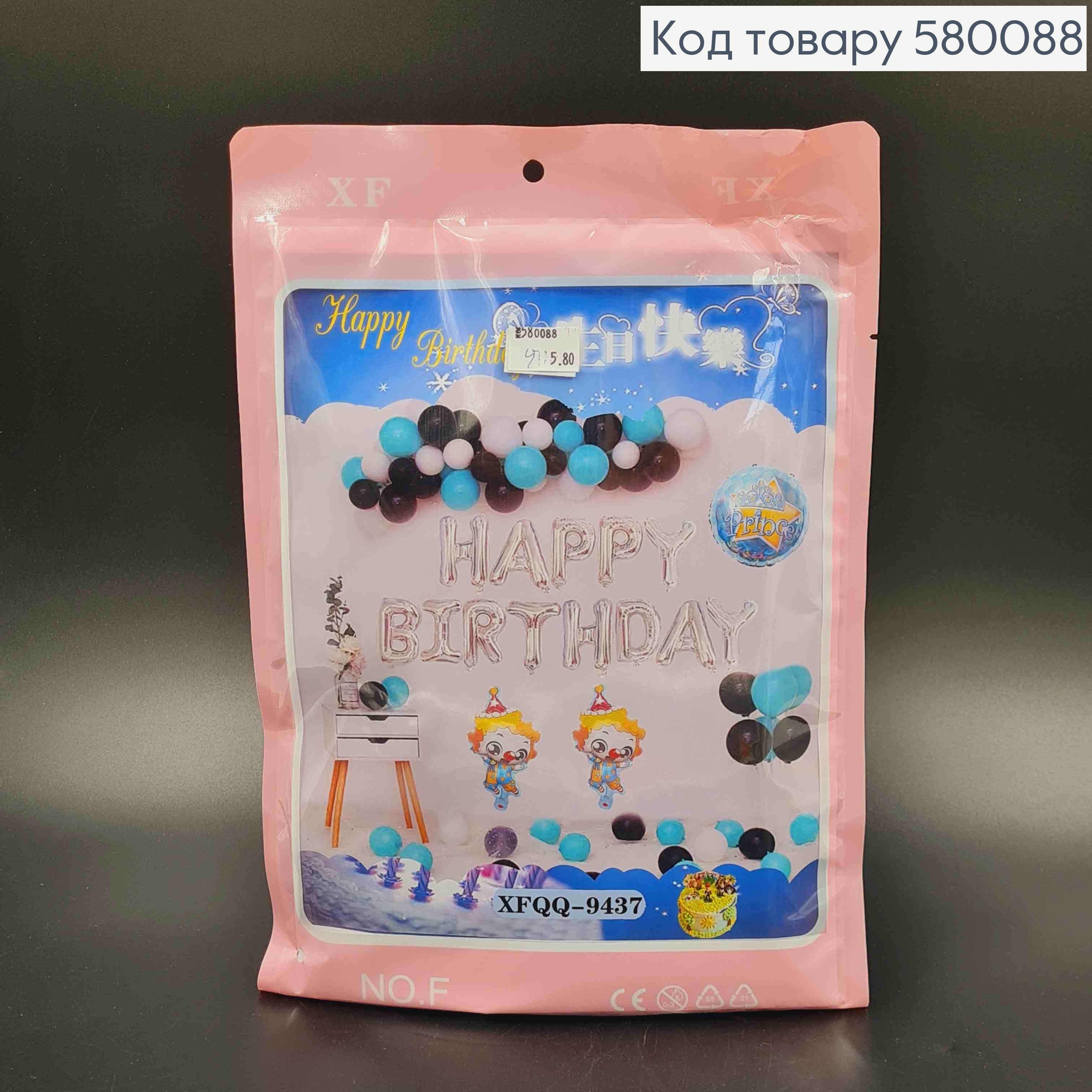 Набор фольгированных шариков, "Happy Birthday", серебряного цвета, + латексные шарики и фигурные.