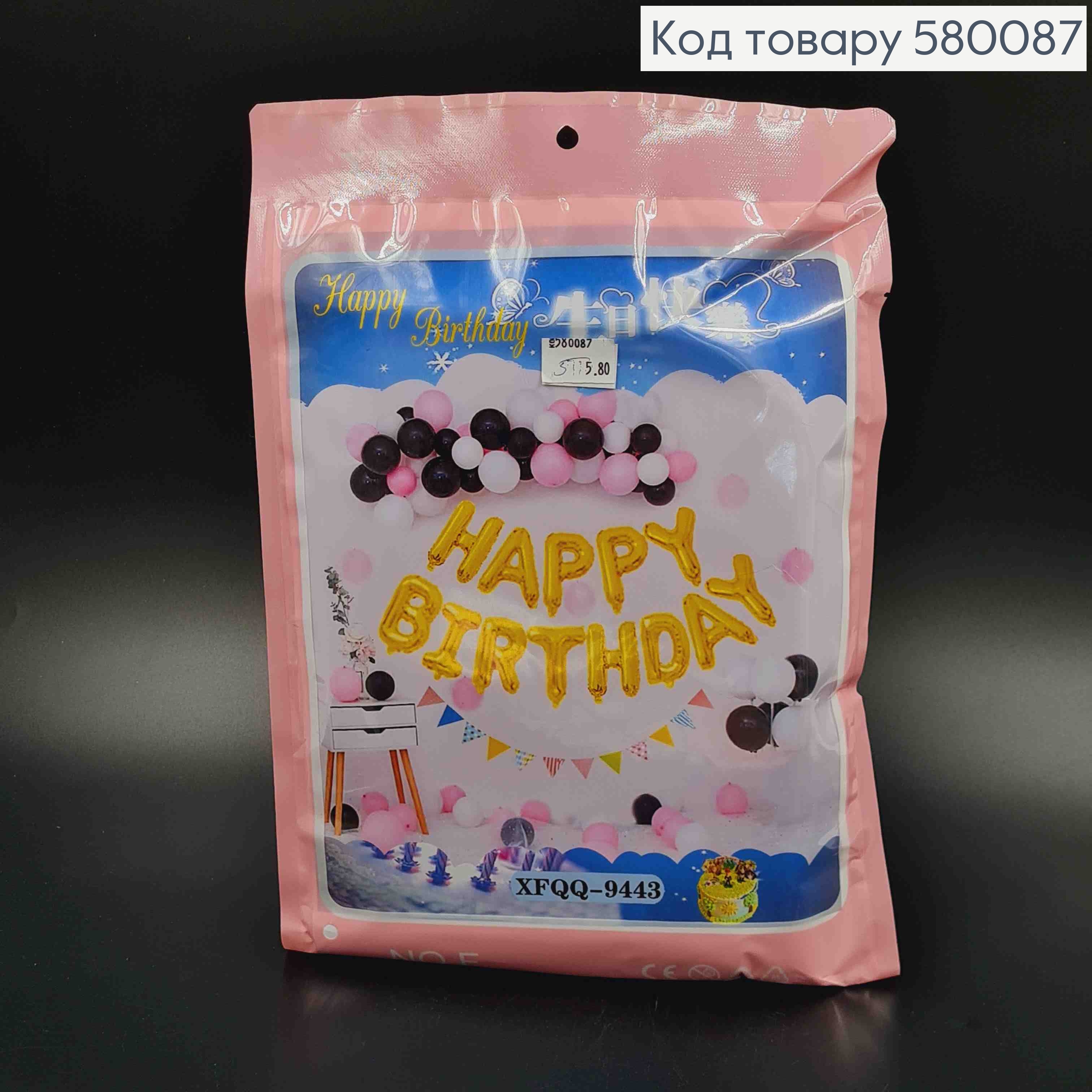 Набор фольгированных шариков, "Happy Birthday", золотого цвета, + латексные шарики