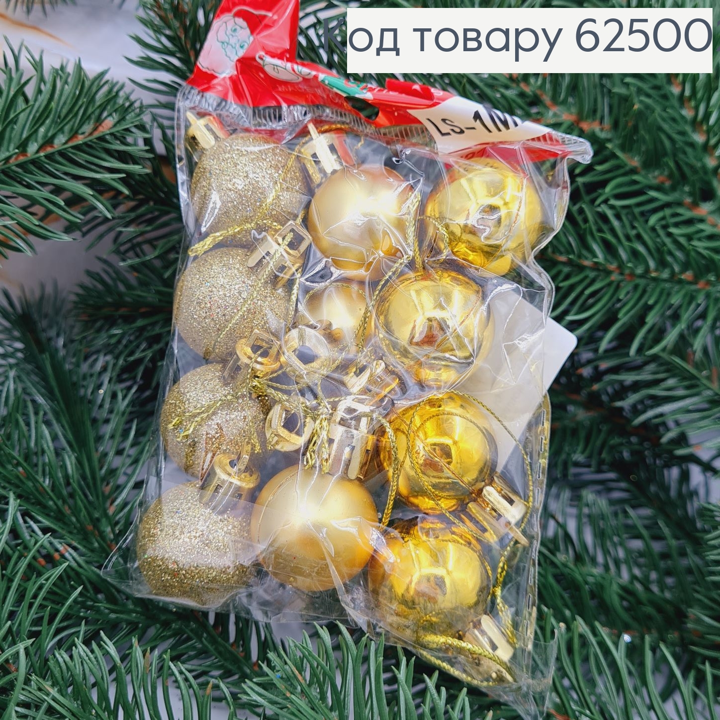 Набор игрушек 30 мм ЗОЛОТЫЕ, Китай ,12 шт, (глитер,матовые, глянцевые) 630021 фото