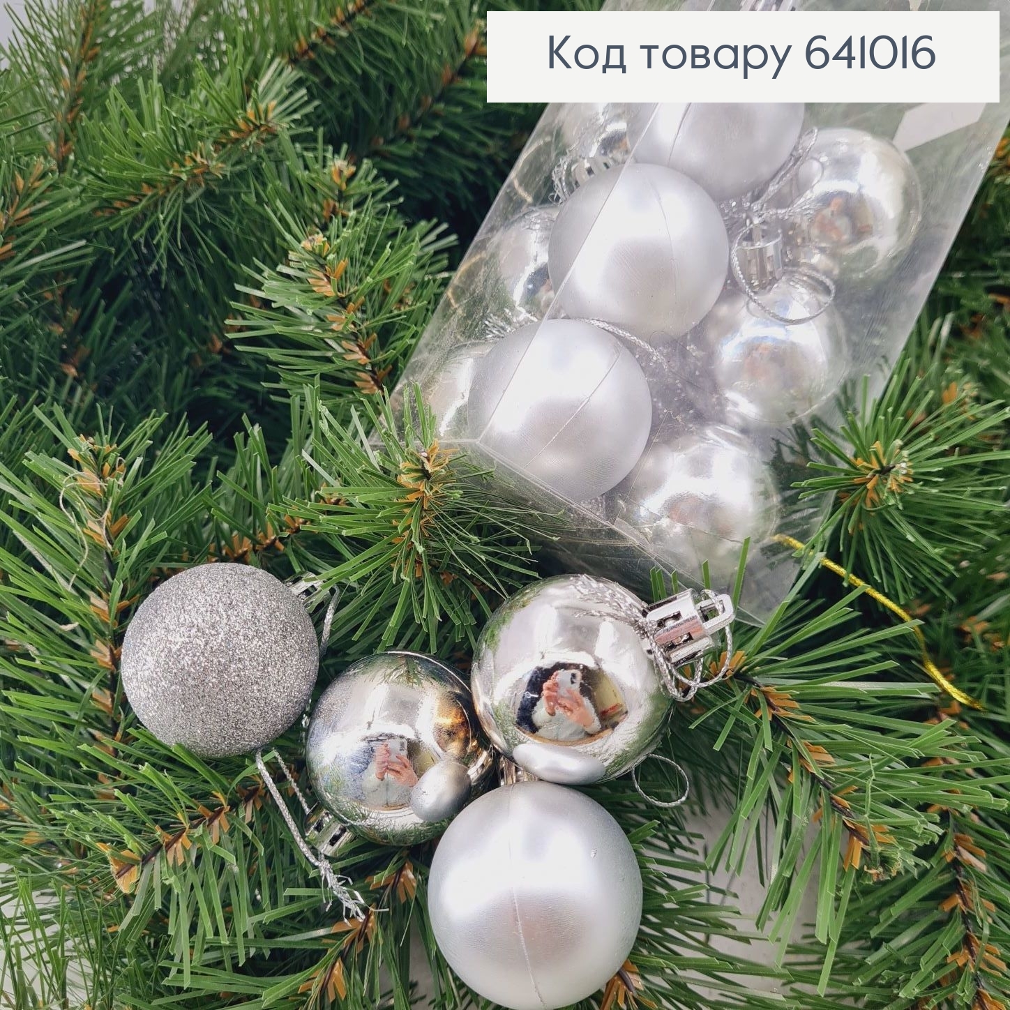 Набор игрушек 40 мм глитер серебряный Китай 12 шт.