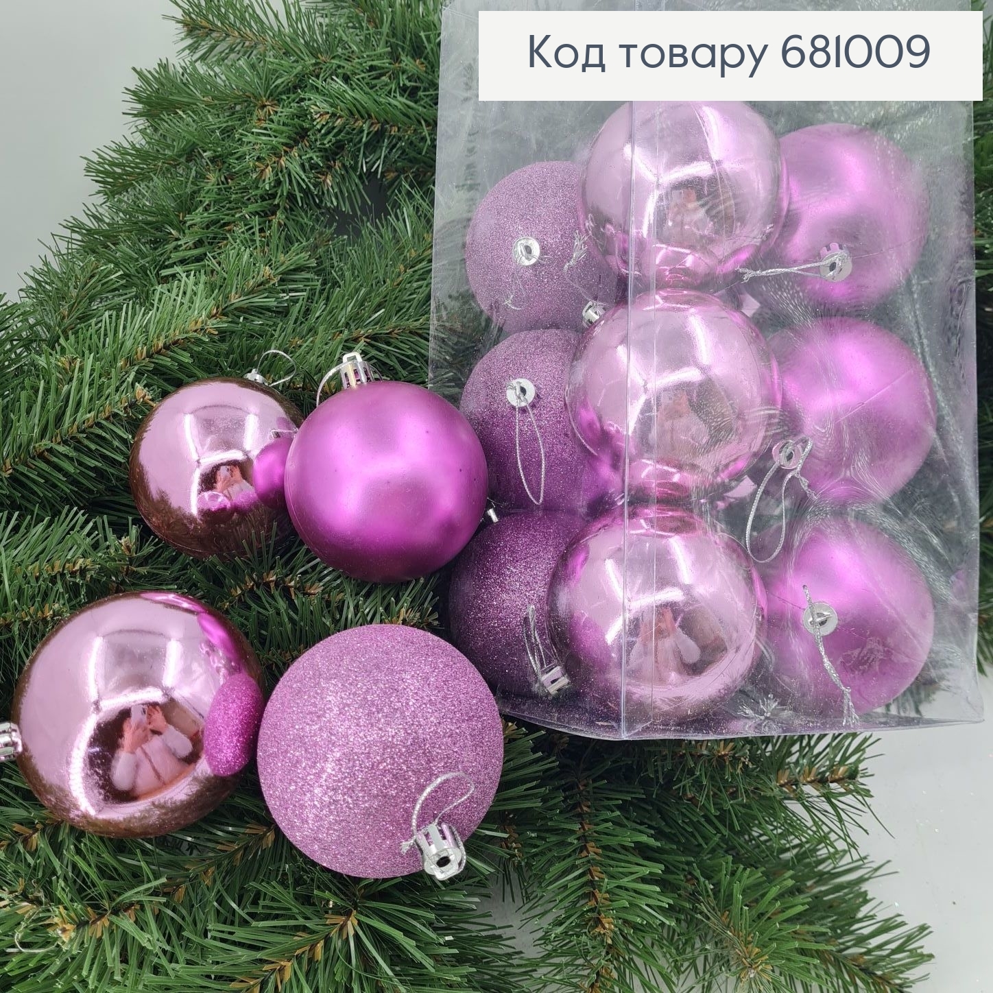 Набор игрушек 80мм (6шт) "ПАСТЕЛЬ +рис", РОЗОВЫЙ цвет, новогодние украшения, пластик, Украина 680276 фото