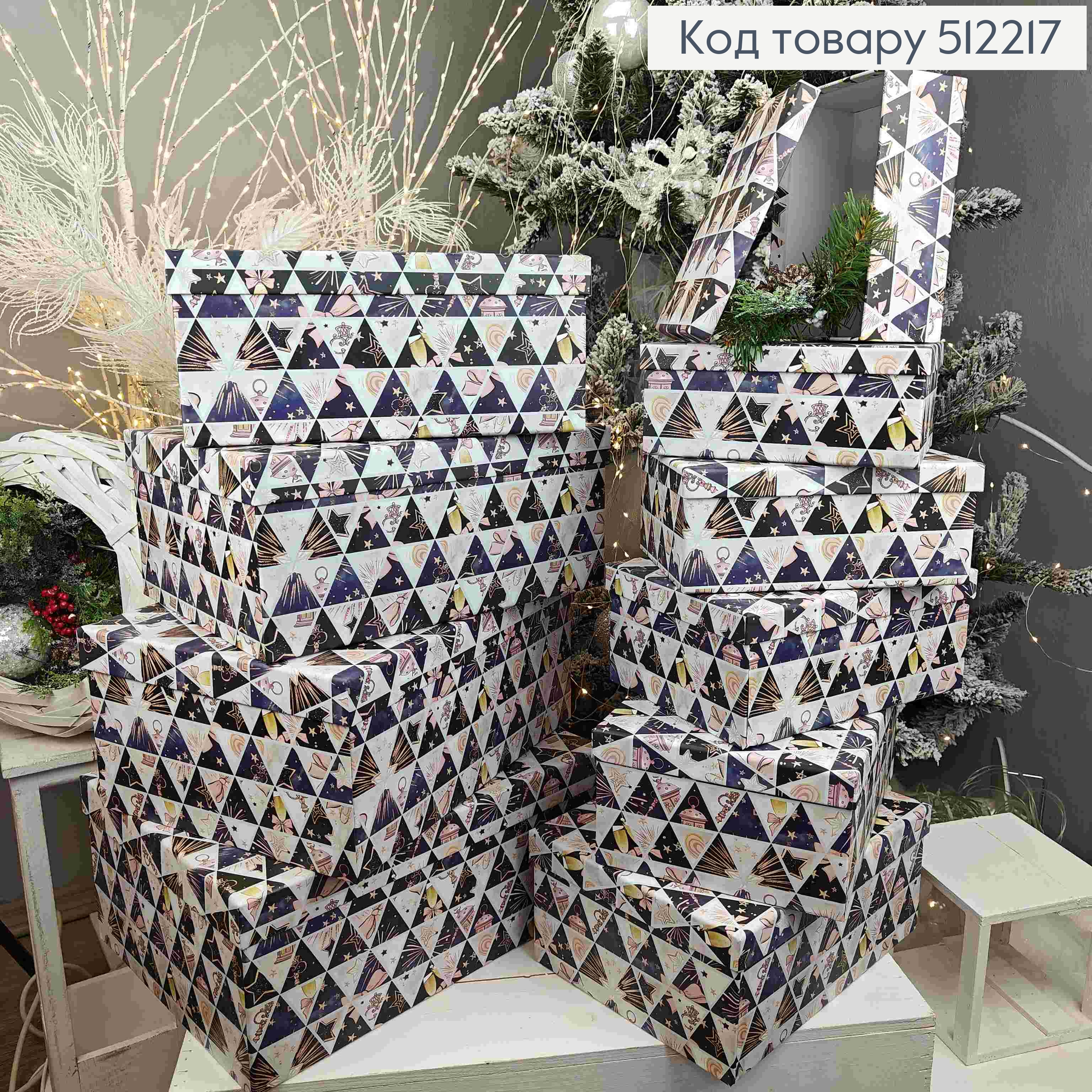 Набор коробок (10шт) ПРАЗДНИЧНЫЙ ГЕОМЕТРИЧЕСКИЙ принт, размеры от 37*29*16 до 19*13*7см