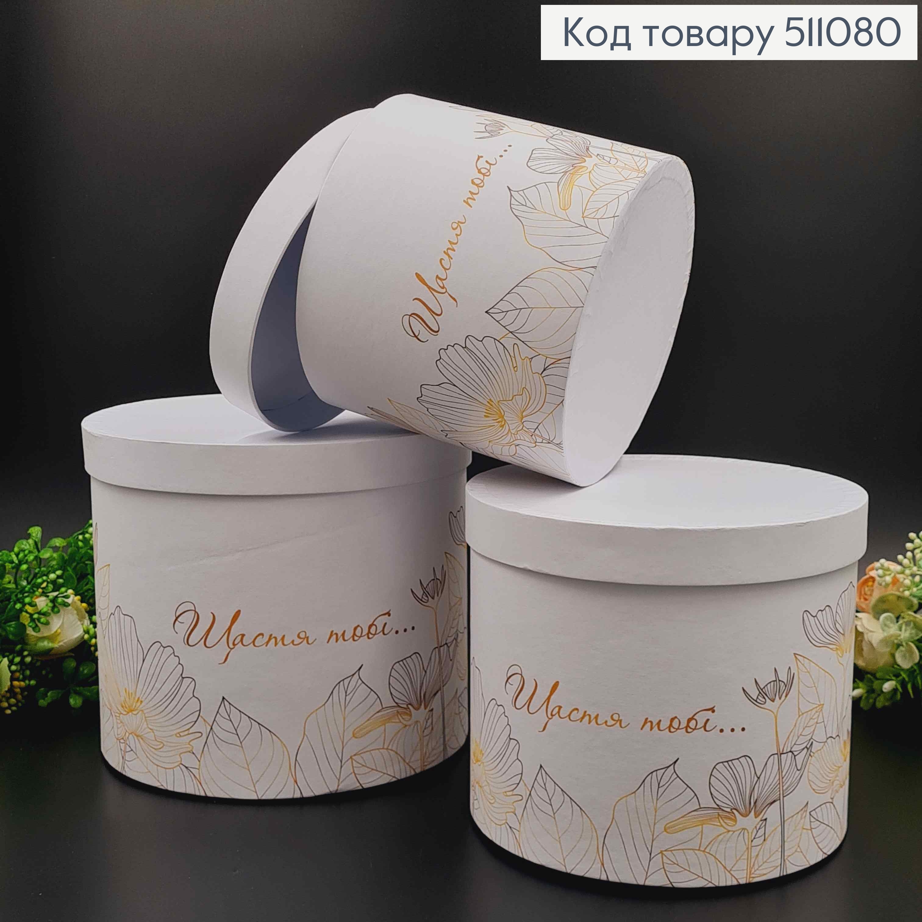 набор коробок, 3шт. Белого цвета с желтым узором "Счастье тебе", 17,5*20,5см, 16*18,5см, 14*16,5см.
