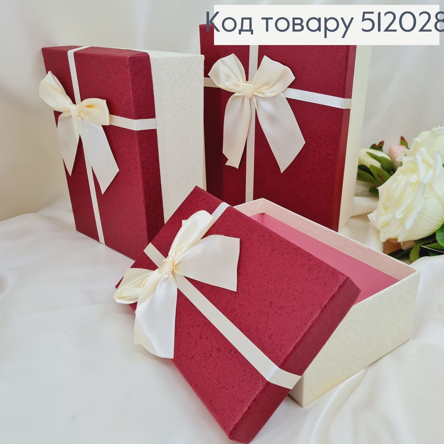 Набор коробок бордовых Бантик 3 шт( 12*19*6,5 см, 14*21*8 см, 16*23*9,5 см)
