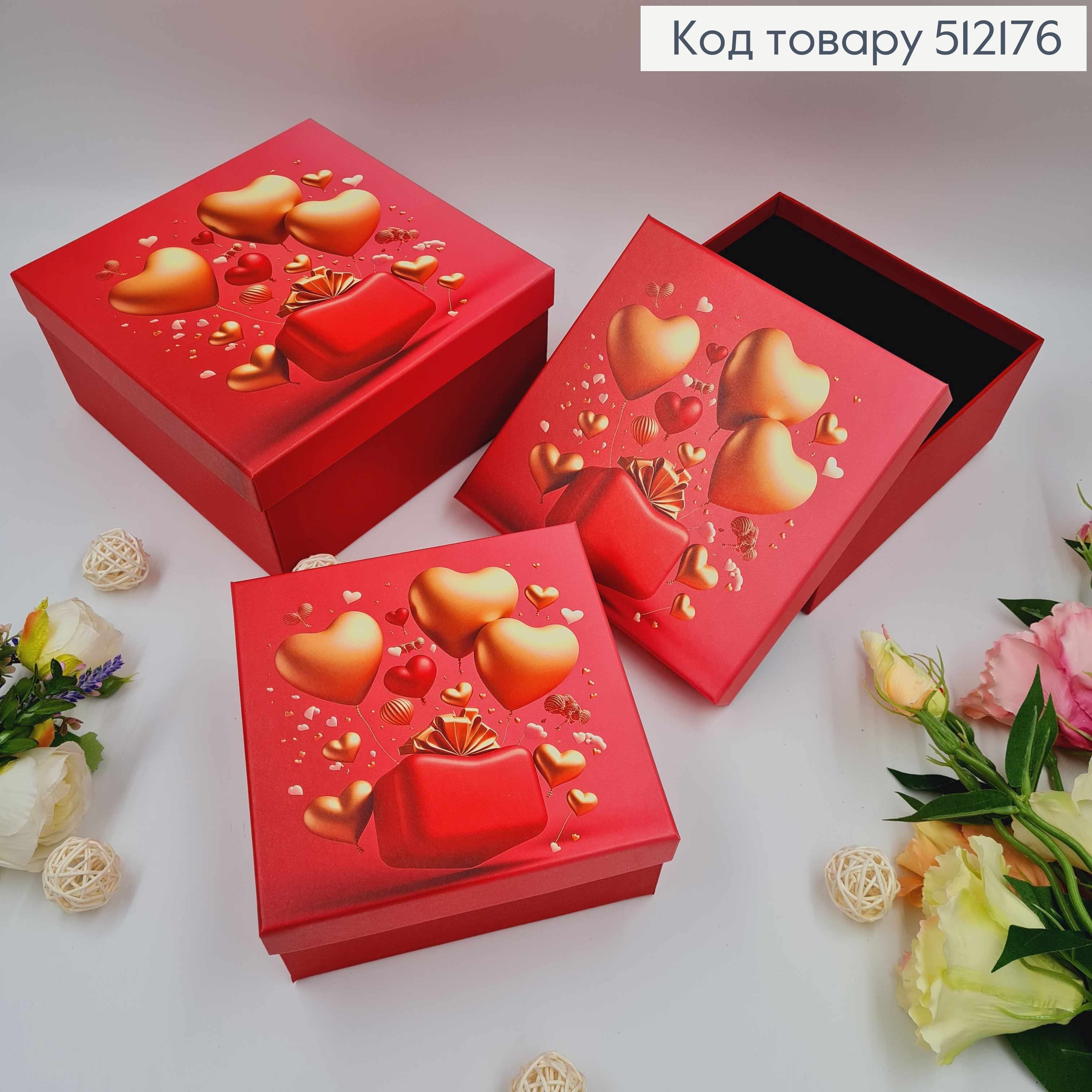 Набор коробок, квадратные, Бордовые, с шариками-сердечками, 3шт(15х15х6см, 17х17х8см, 19х19х9см)