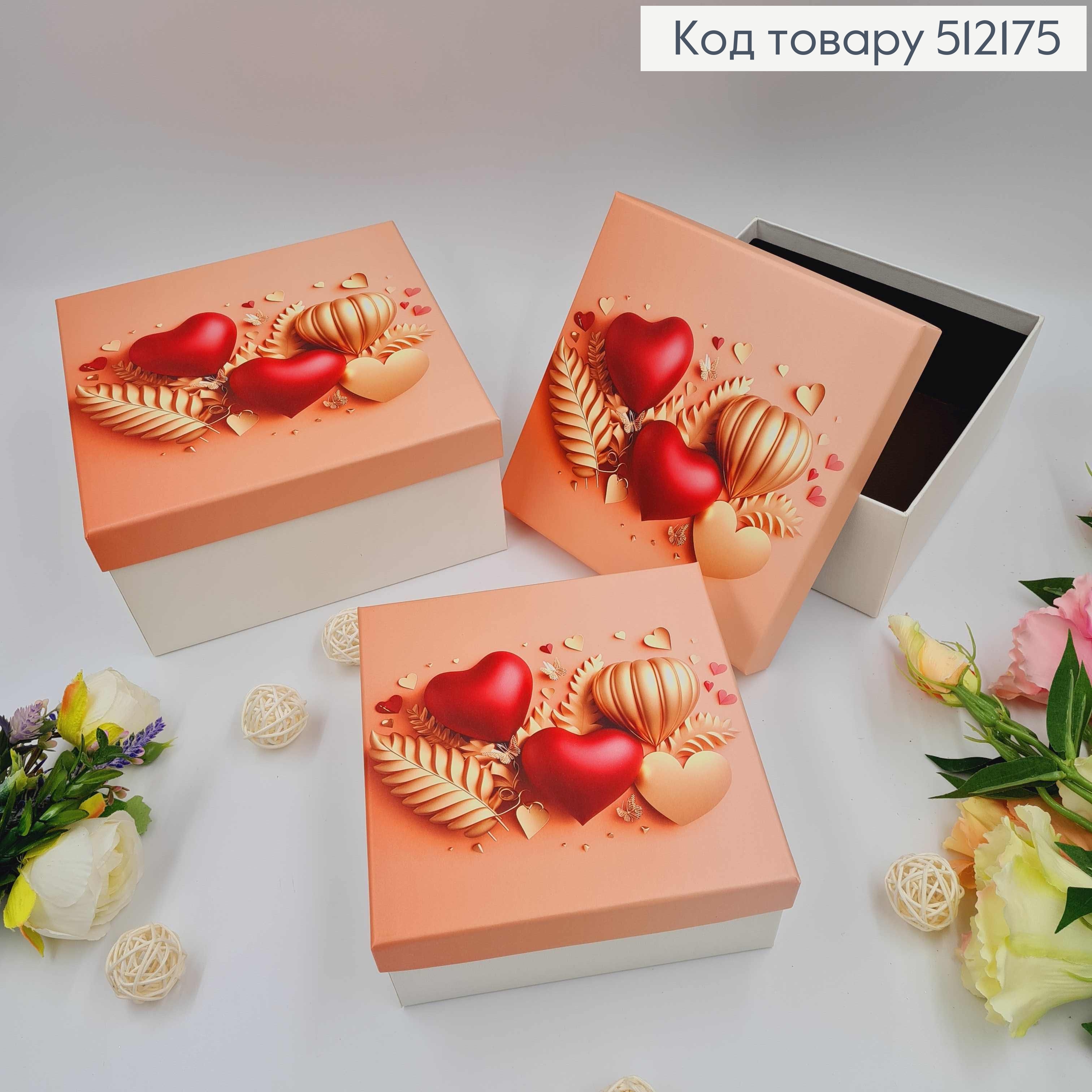 Набор коробок, квадратные, Персиковые, с шариками, 3шт(15х15х6см, 17х17х8см, 19х19х9см)