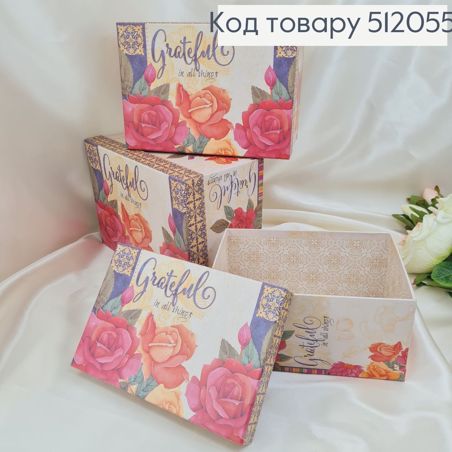 Набор коробок Цветочки 3 шт(22*15*11 см, 17*24*12,5см, 19*25,5*14см