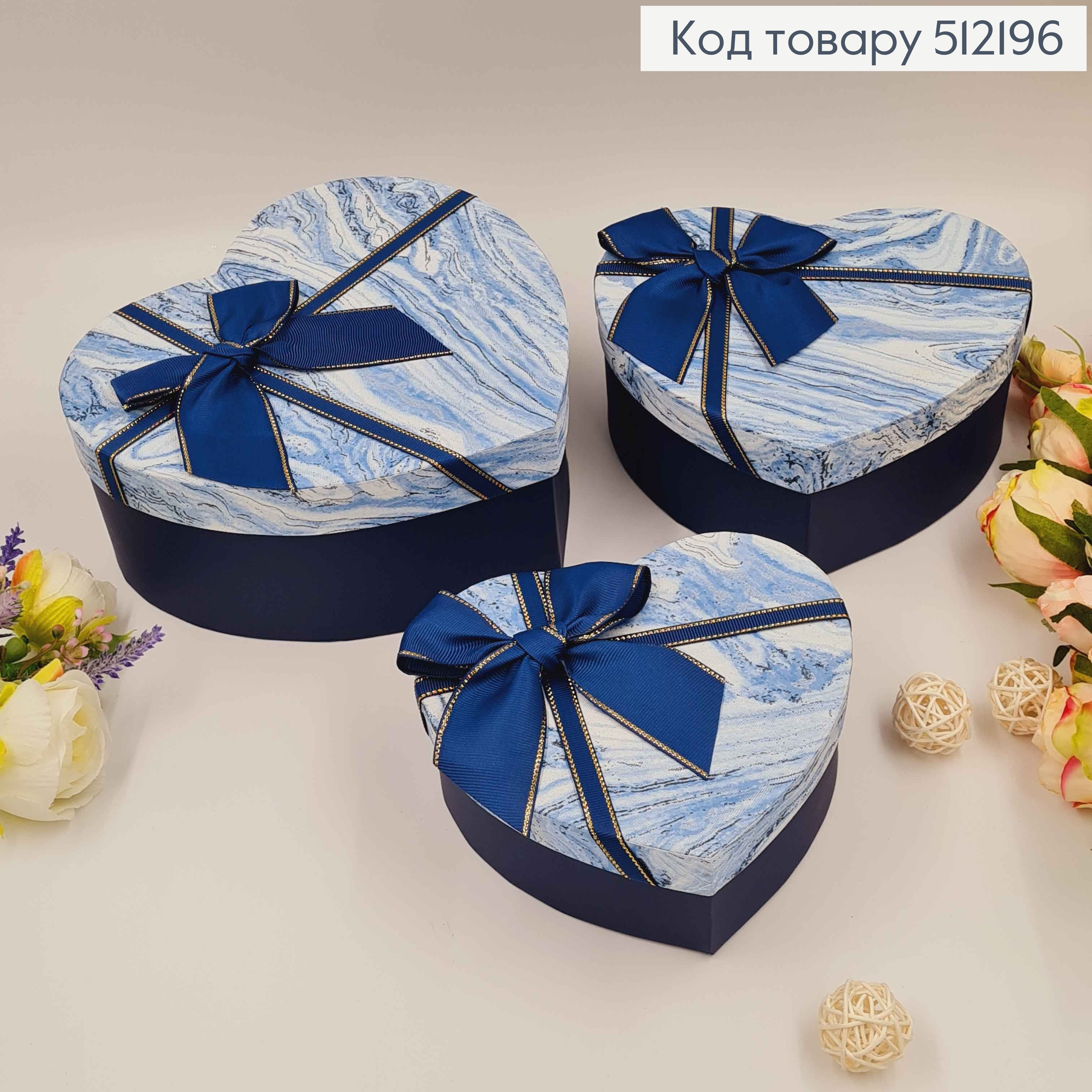 Набор коробок "СЕРДЦЕ"(3шт) "СИНИЙ Мрамор" с лентой (21х18х9см15х13х6см,18х15х7см, 21х18х9см)