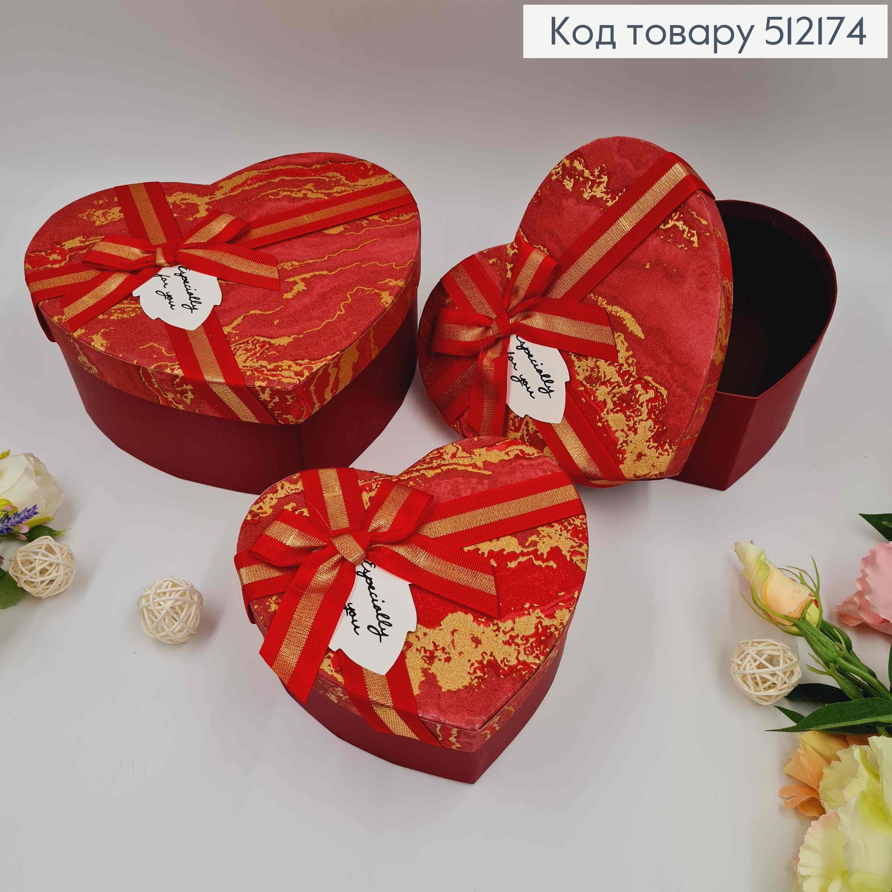 Набор коробок, Сердце, Красные, Золотой мрамор, 3шт(15х13х6см, 18х15х7см, 21х18х9см)