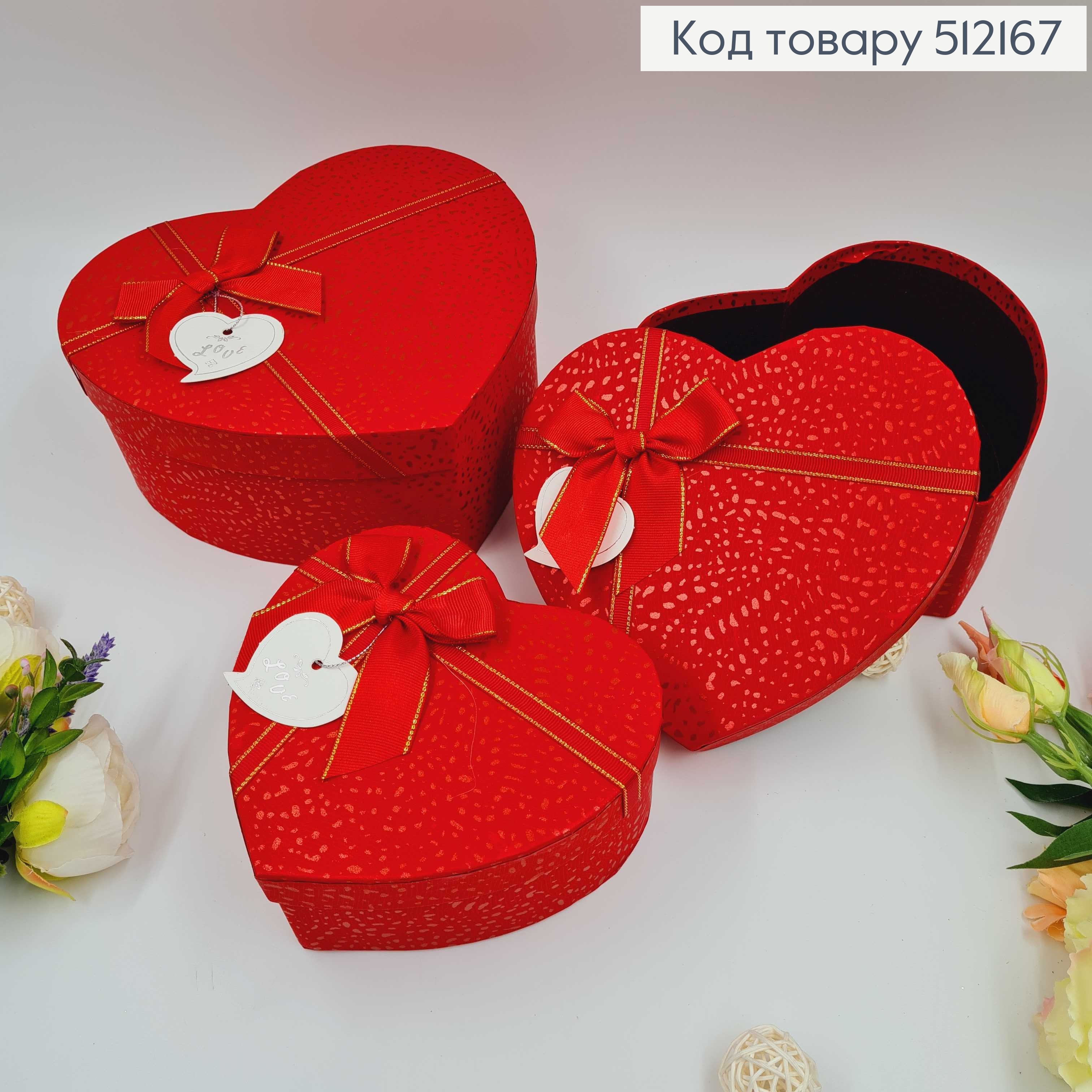 Набор коробок, Сердце, Красные пятнистые, с бантиком 3шт(15х13х6см, 18х15х7см, 21х18х9см)