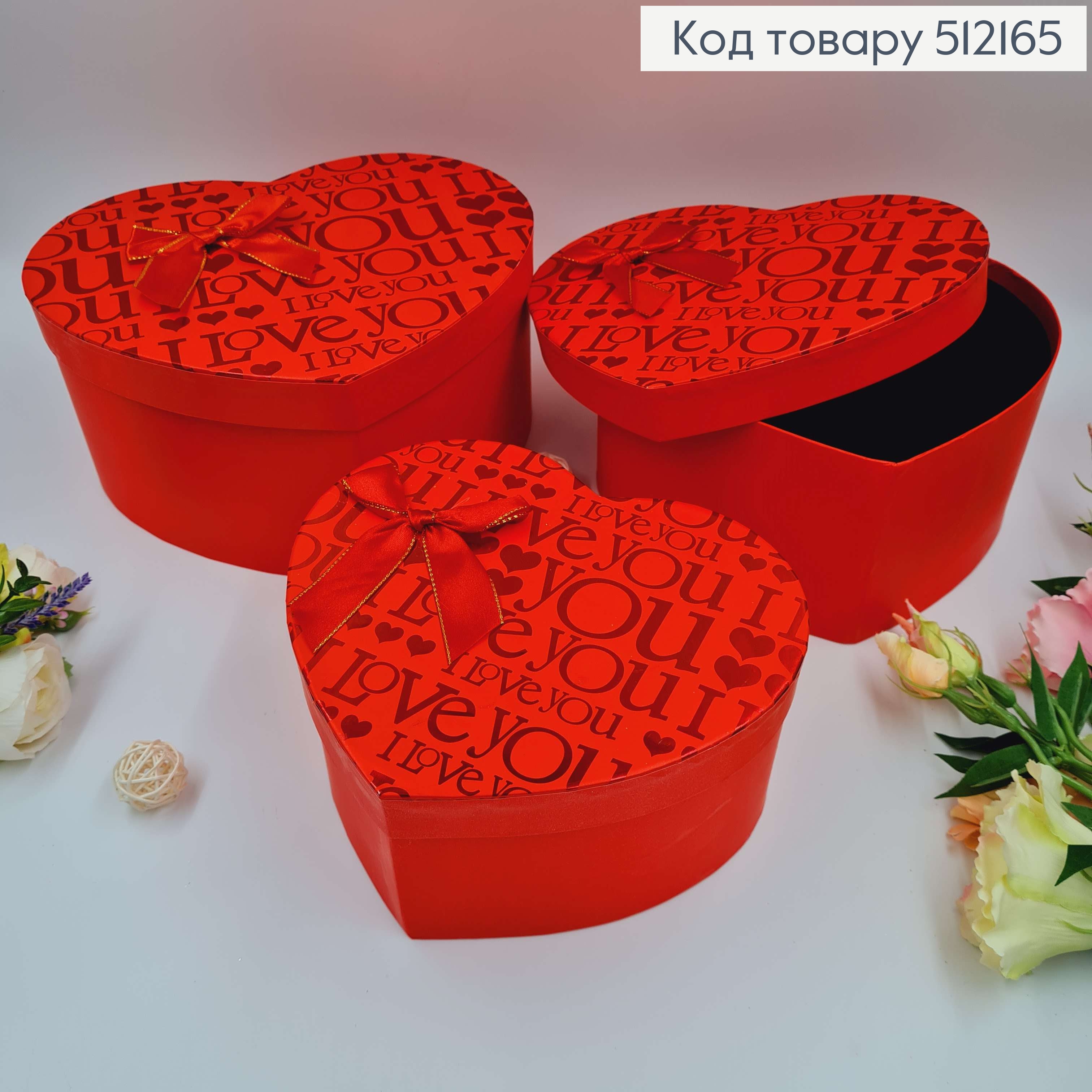 Набор коробок, Сердце, Красные, с бантом "Love u", 3шт(21х17х10см, 23х19х11см, 26х21х13см)