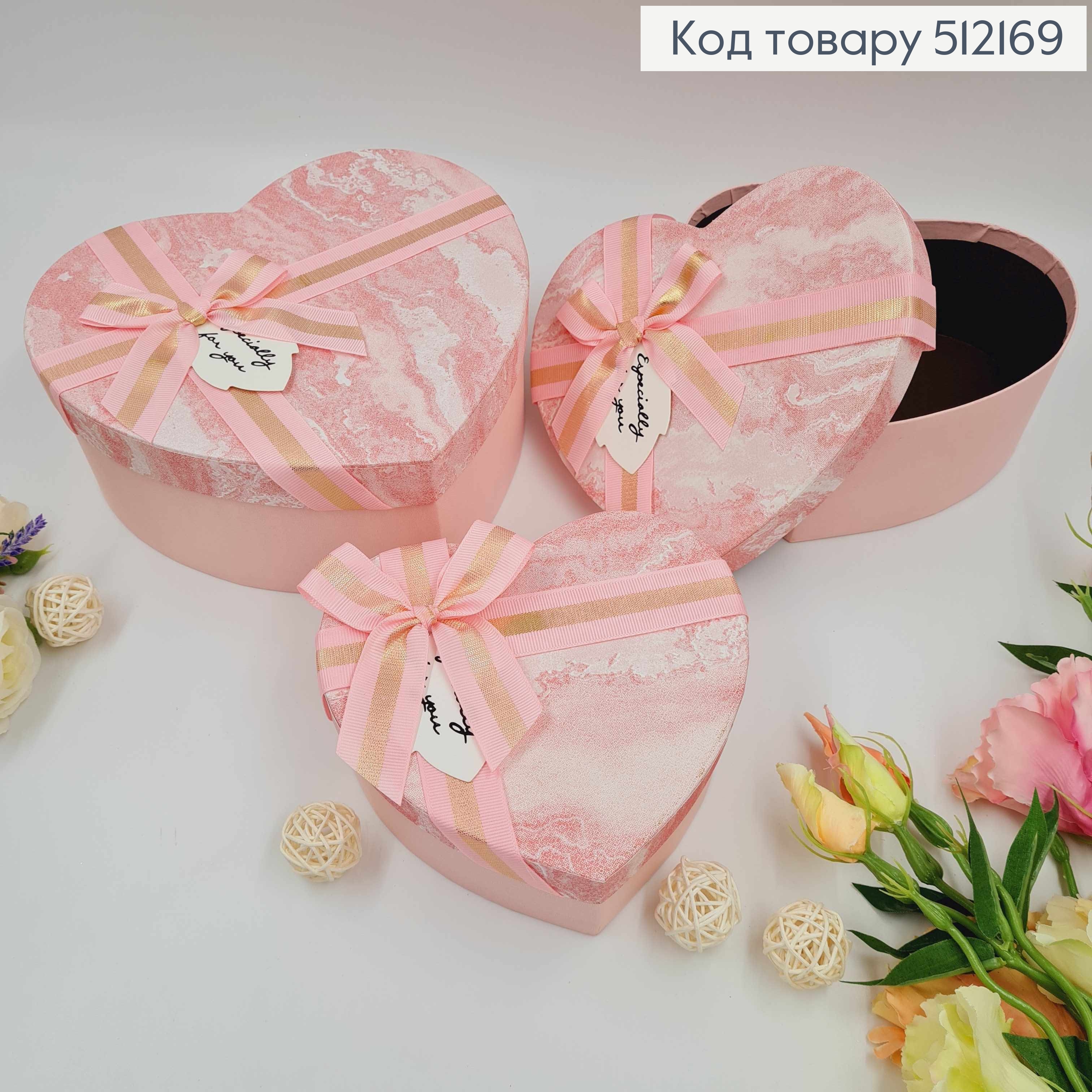 Набор коробок, Сердце, Розовый мармур, 3шт(15х13х6см, 18х15х7см, 21х18х9см)