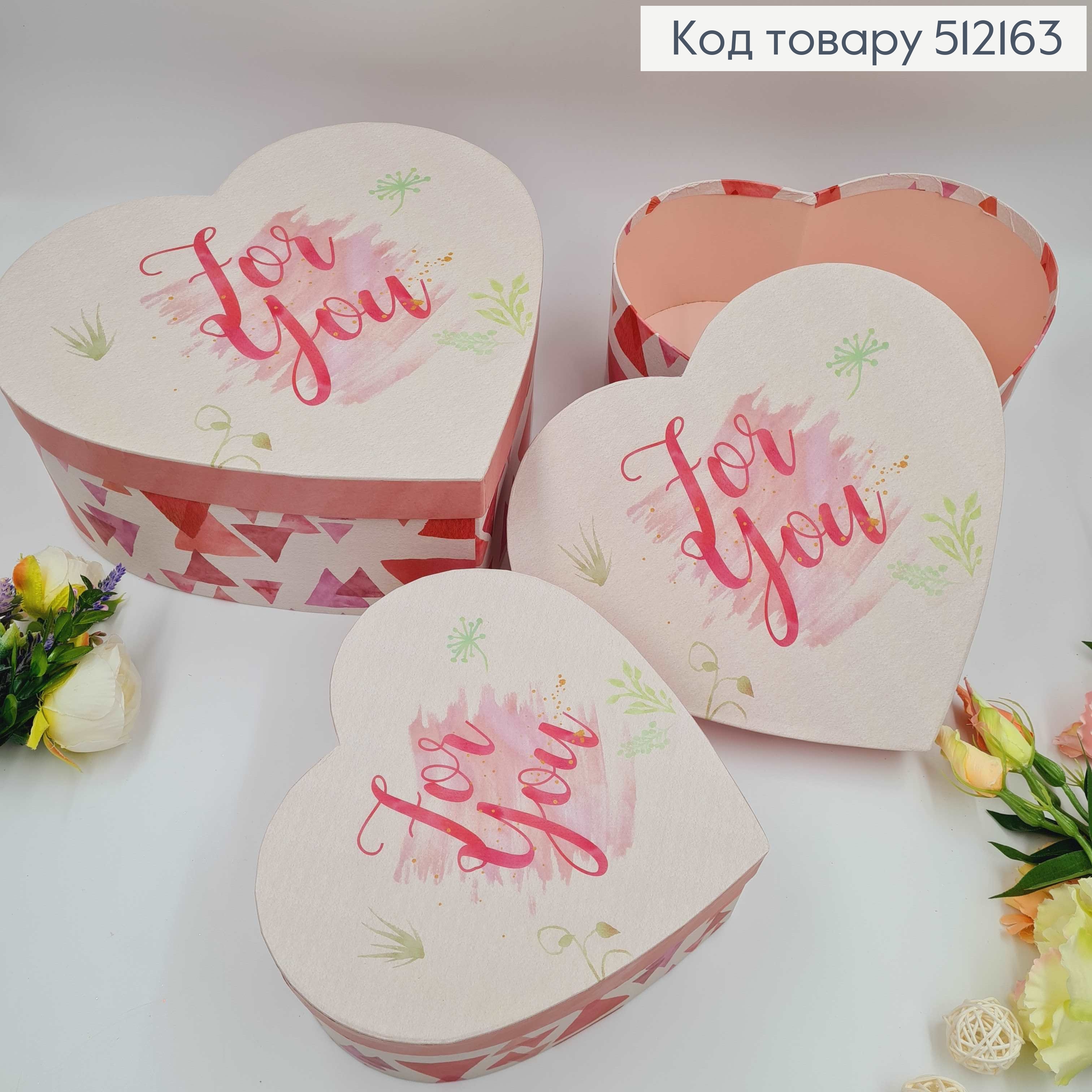 Набор коробок, Сердце, Розовые тона, "For You" акварель, 3шт(20х18х8см, 25х22х9,5см, 29х26х11,5см)