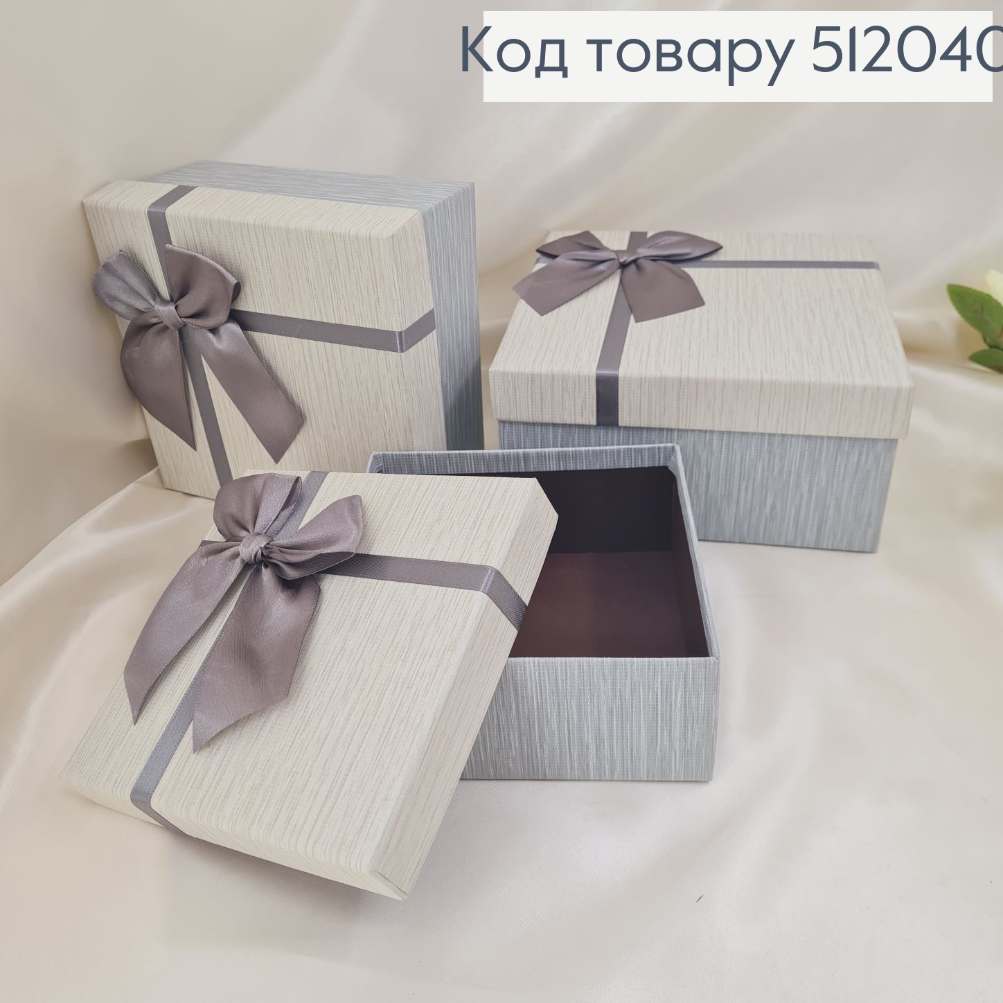 ¶Набор коробок серых с бантиком 3 шт( 15*15*6,5 см, 17,5*17,5*8 см, 19*19*9,5 см)