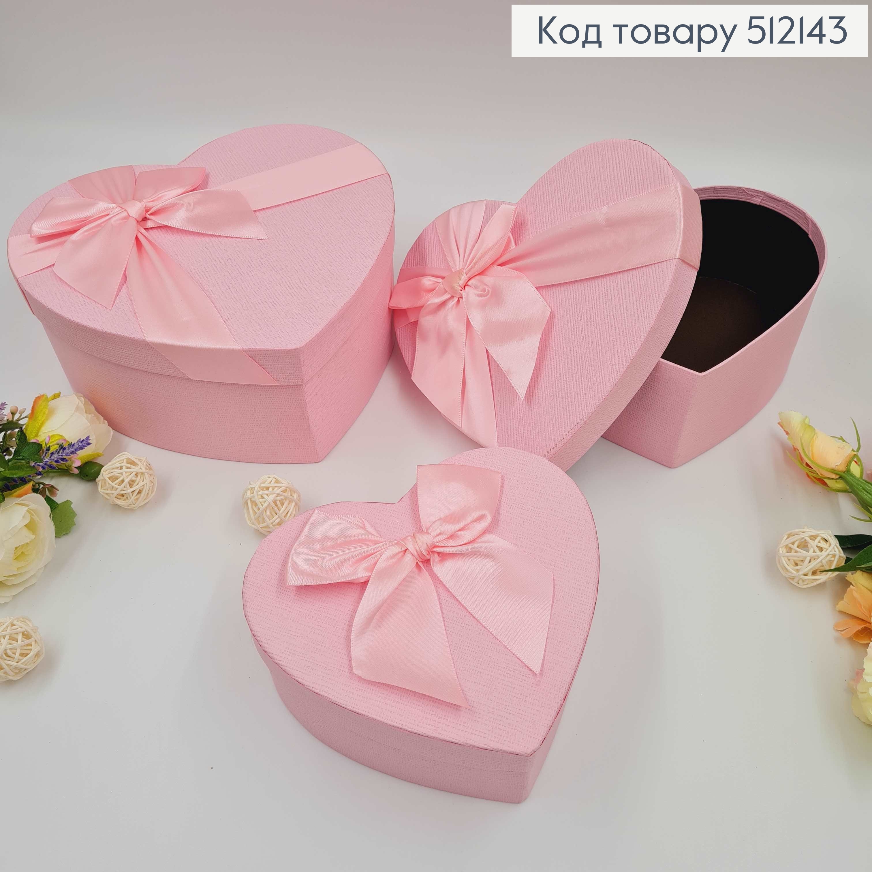 Набор коробок в форме сердца, Розовая с лентой, 3шт (14х16х6см, 17х18х7см, 20х21х9см)