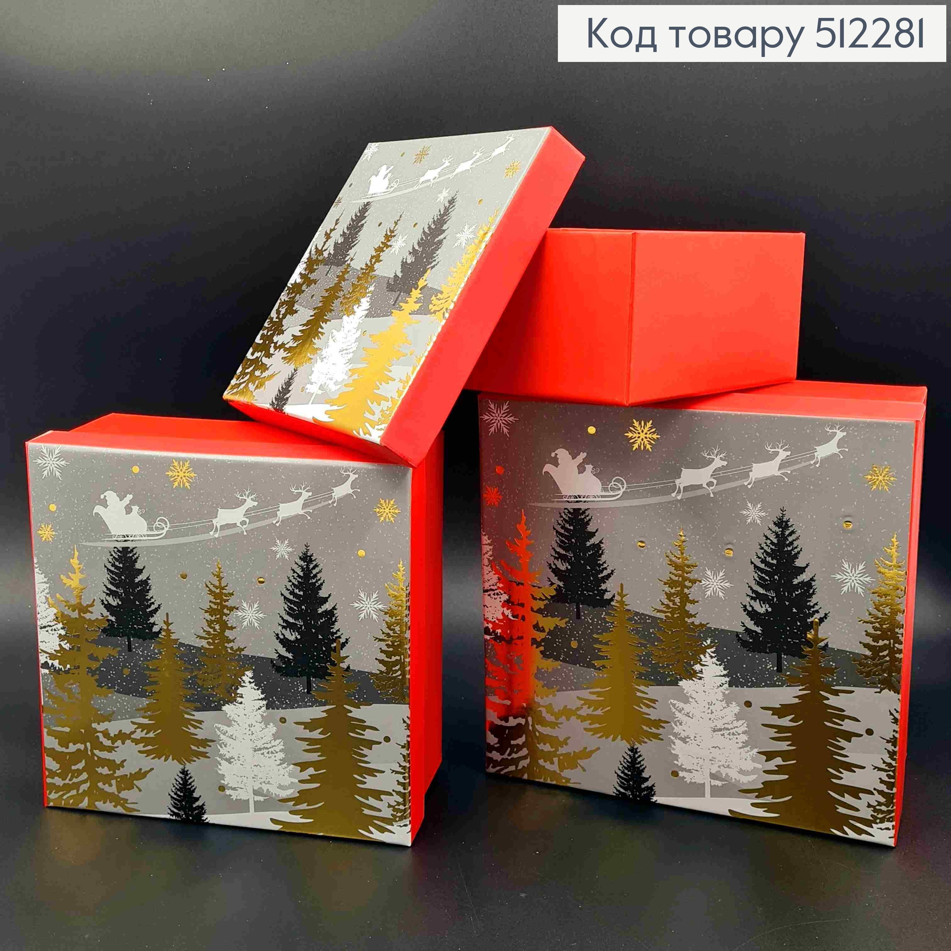 Набор коробок (3шт), квадратная с Новогодним принтом, (19х19х14см, 20х20х16см, 23х23х18см) 512283 фото