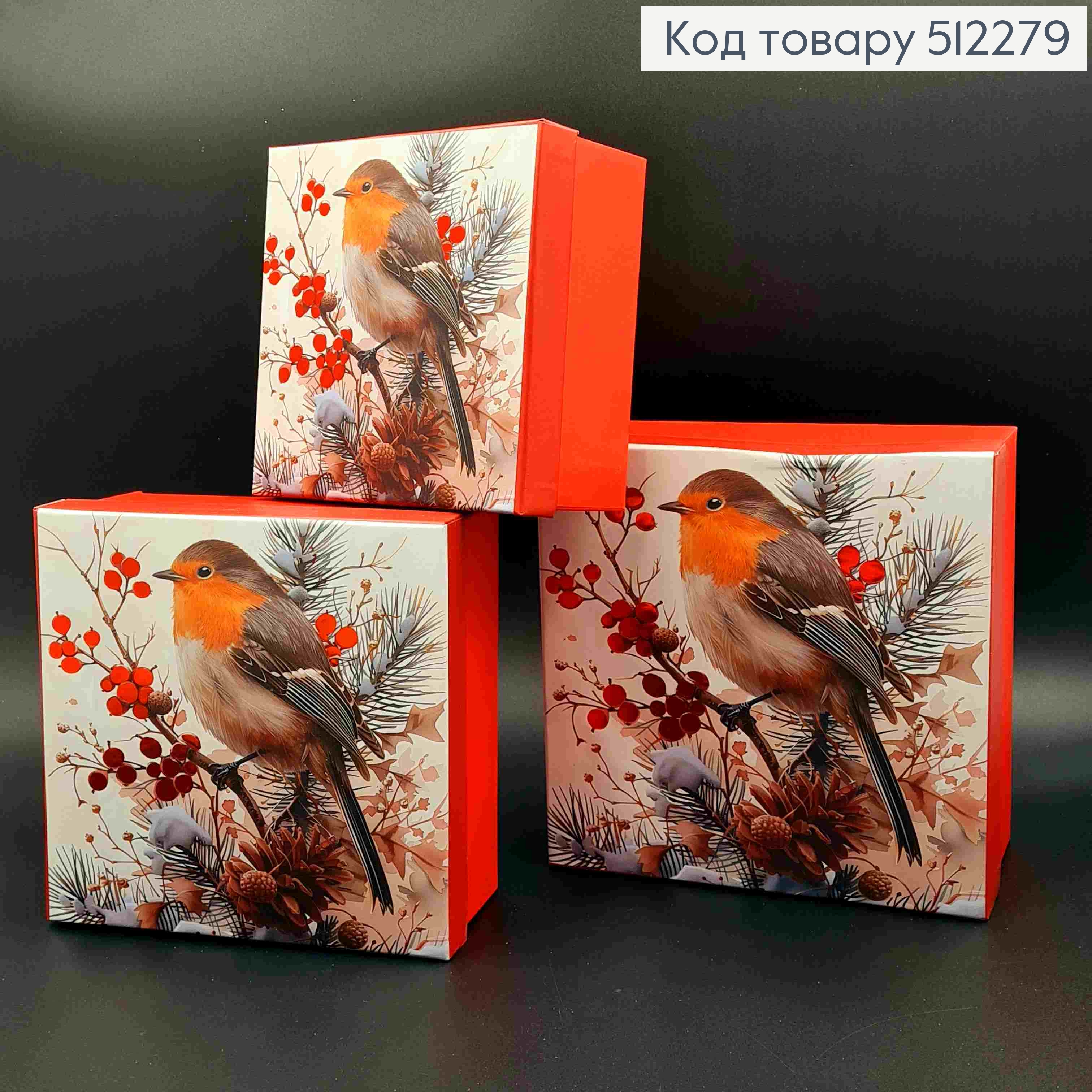 Набор коробок (3шт), квадратная с изображением Снегирь, (20х20х9см, 17,5х17,5х8,5см, 15х15х7см)