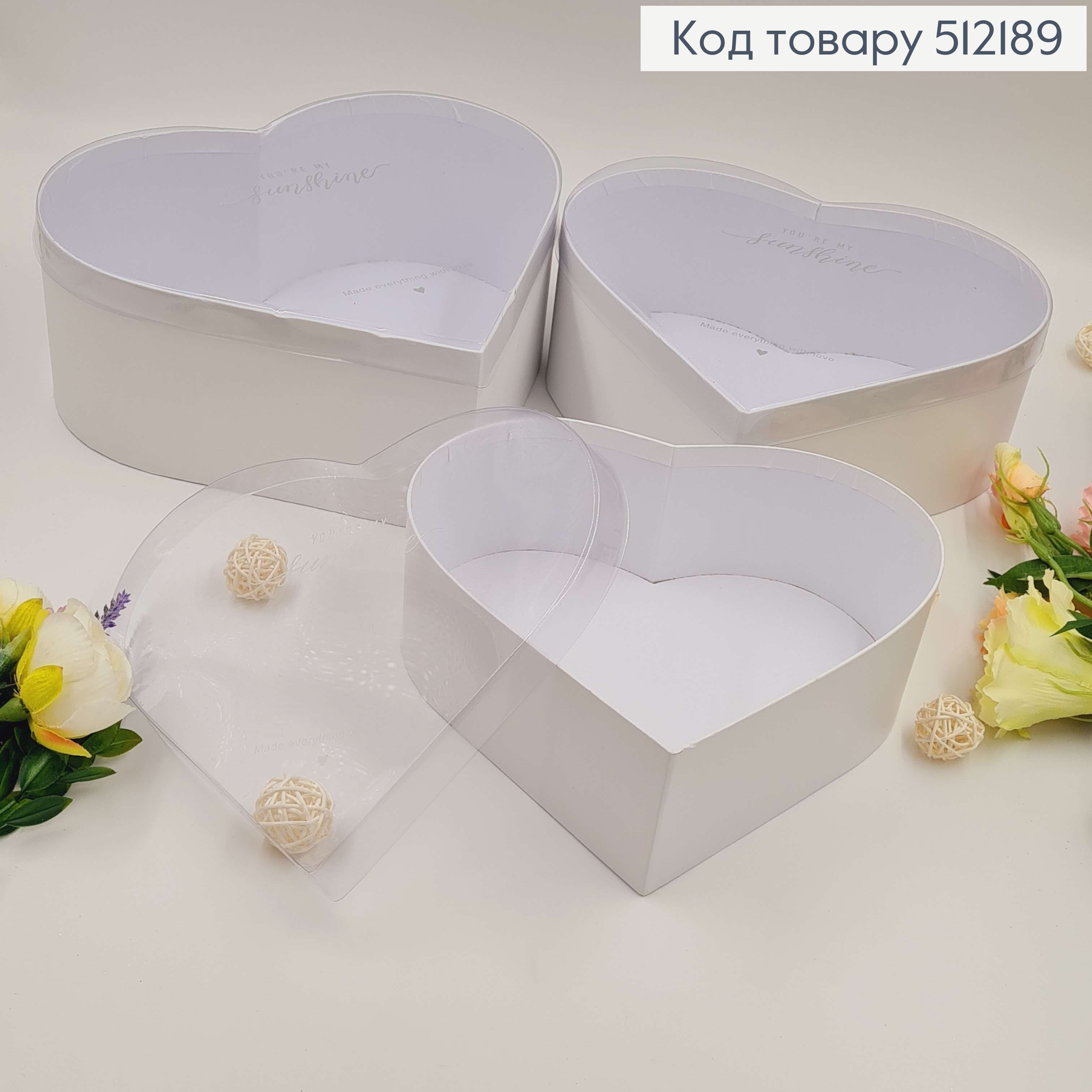 Набор коробок (3шт) "СЕРДЦЕ", прозрачный верх, БЕЛЫЕ ( 32х32х13 см, 30х30х12 см, 28х27,5х11 см)