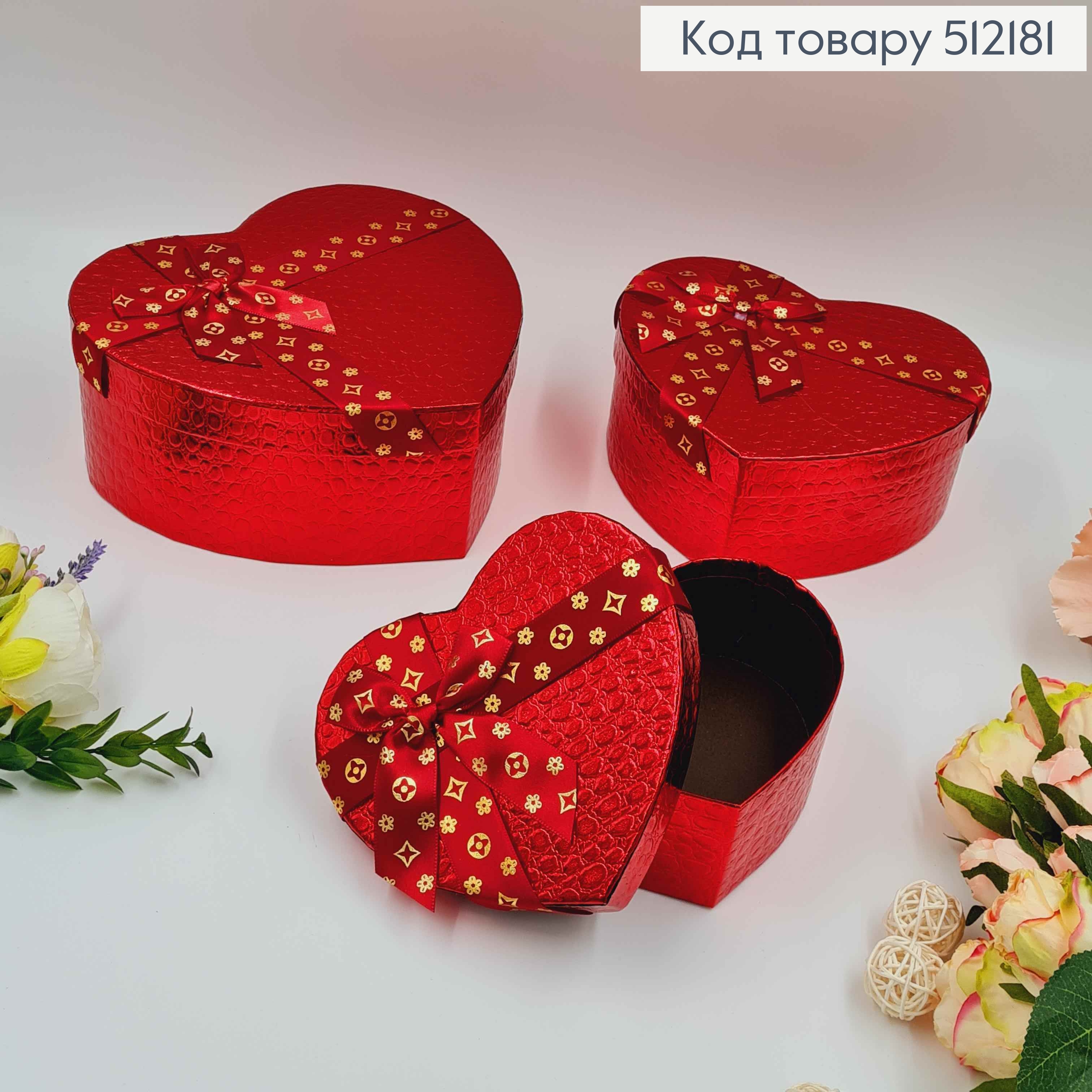 Набор коробок (3шт), Сердце КРАСНОЕ "Экокожа", лента "Луи Витон", (15х13х6см, 18х15х7см, 21х18х9см)