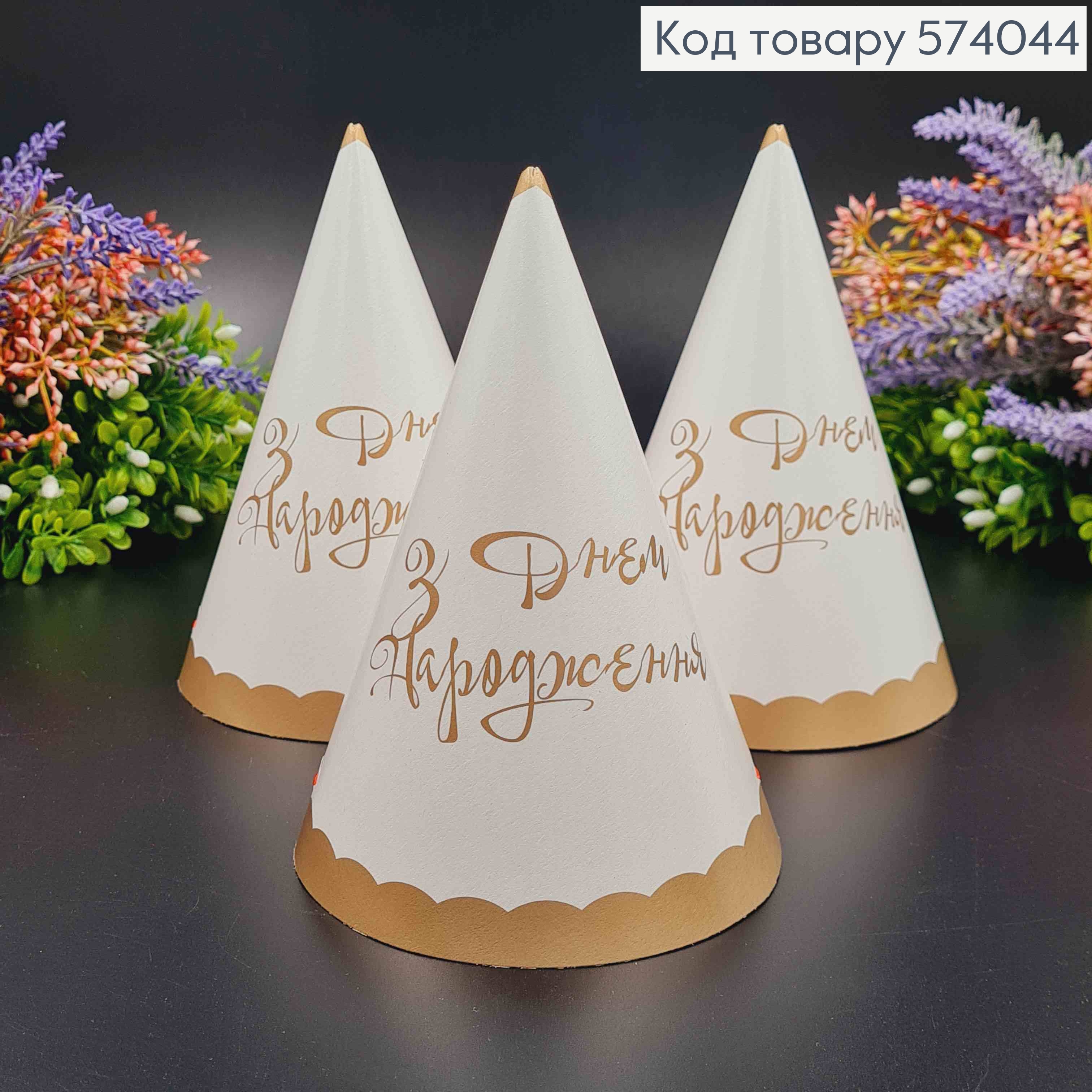 Набор праздничных колпачков, "С днем рождения" белого цвета с золотым ободком, 20шт/уп.