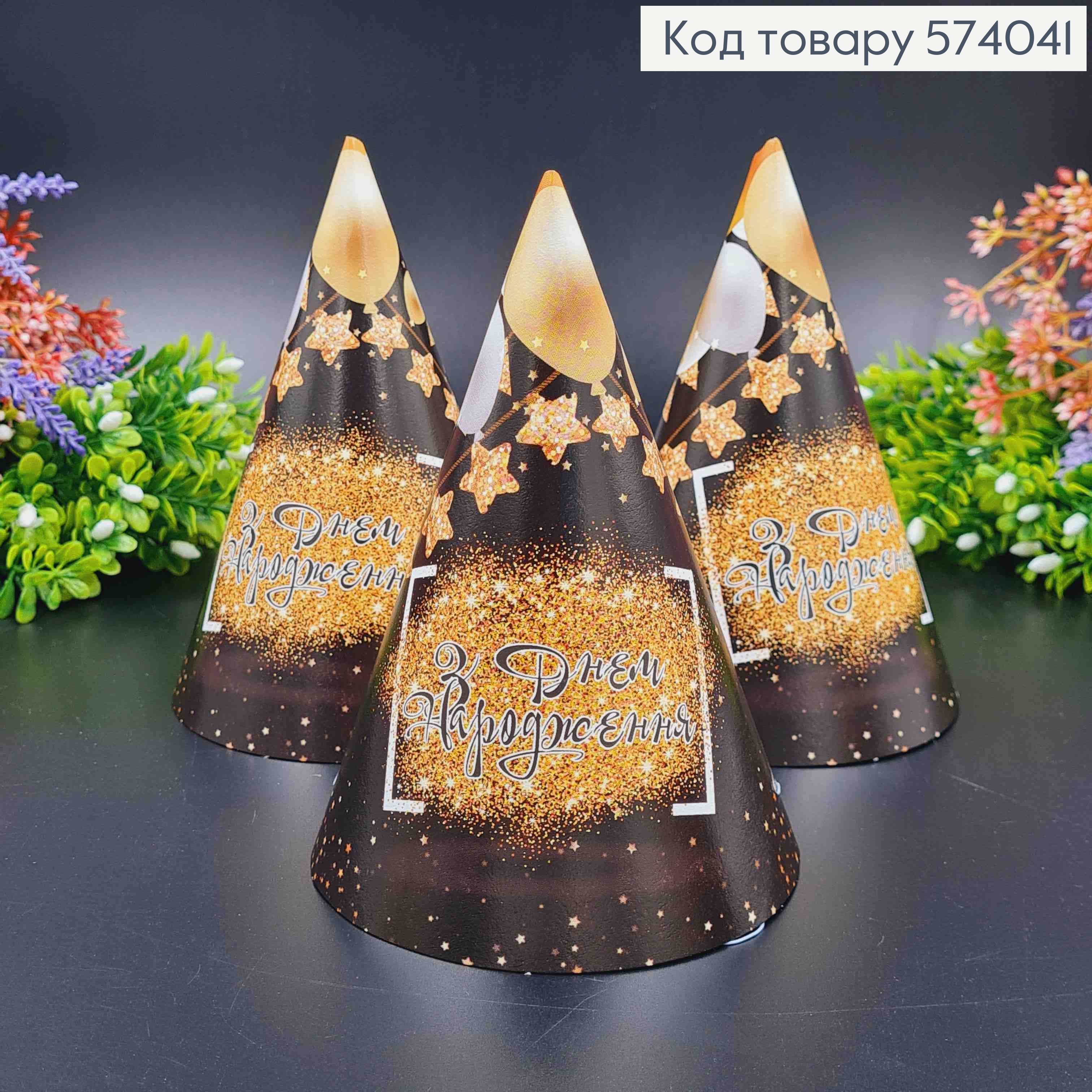 Набор праздничных колпачков, "HAPPY Birthday", Черного цвета с золотой надписью, 10шт/уп. 574153 фото