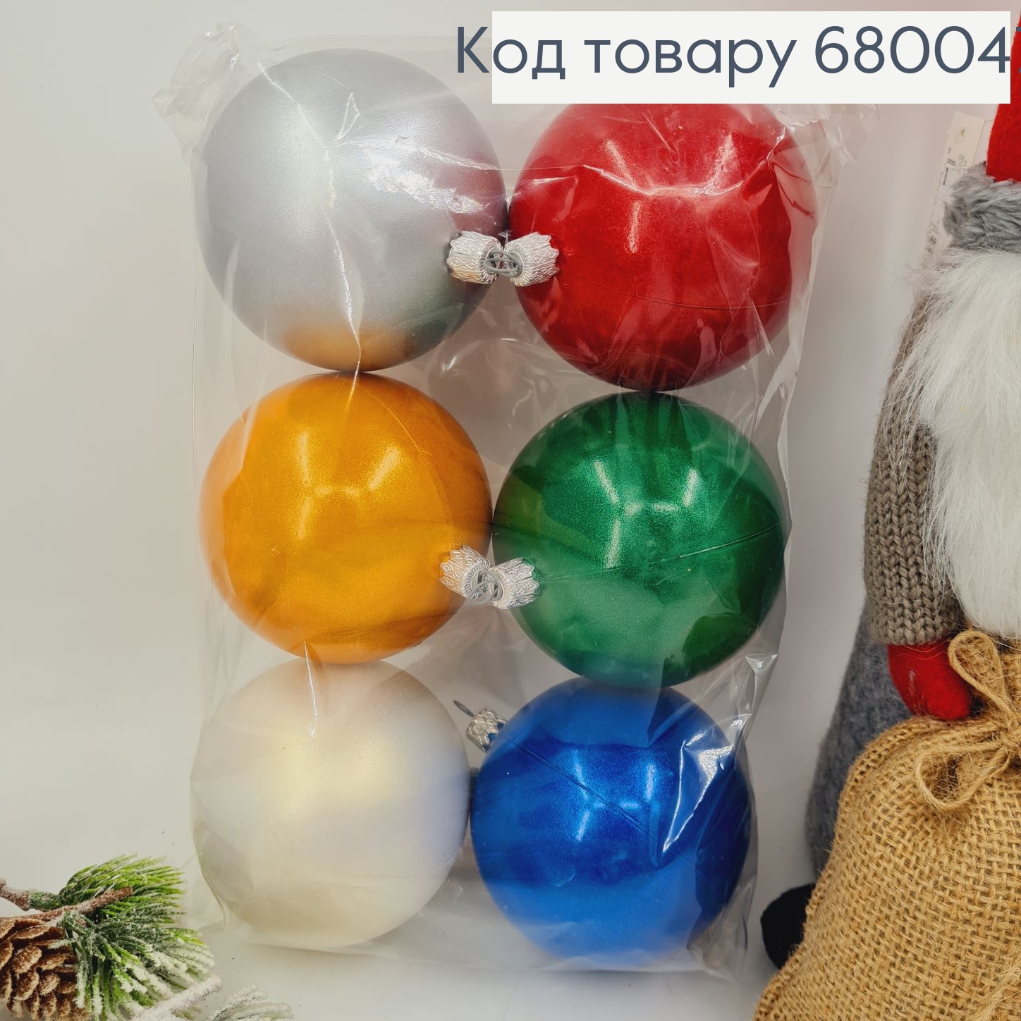 Набор игрушек 80мм (6шт) "ПАСТЕЛЬ+рис", БЕЛЫЙ цвет, новогодние украшения, пластик, Украина 680275 фото