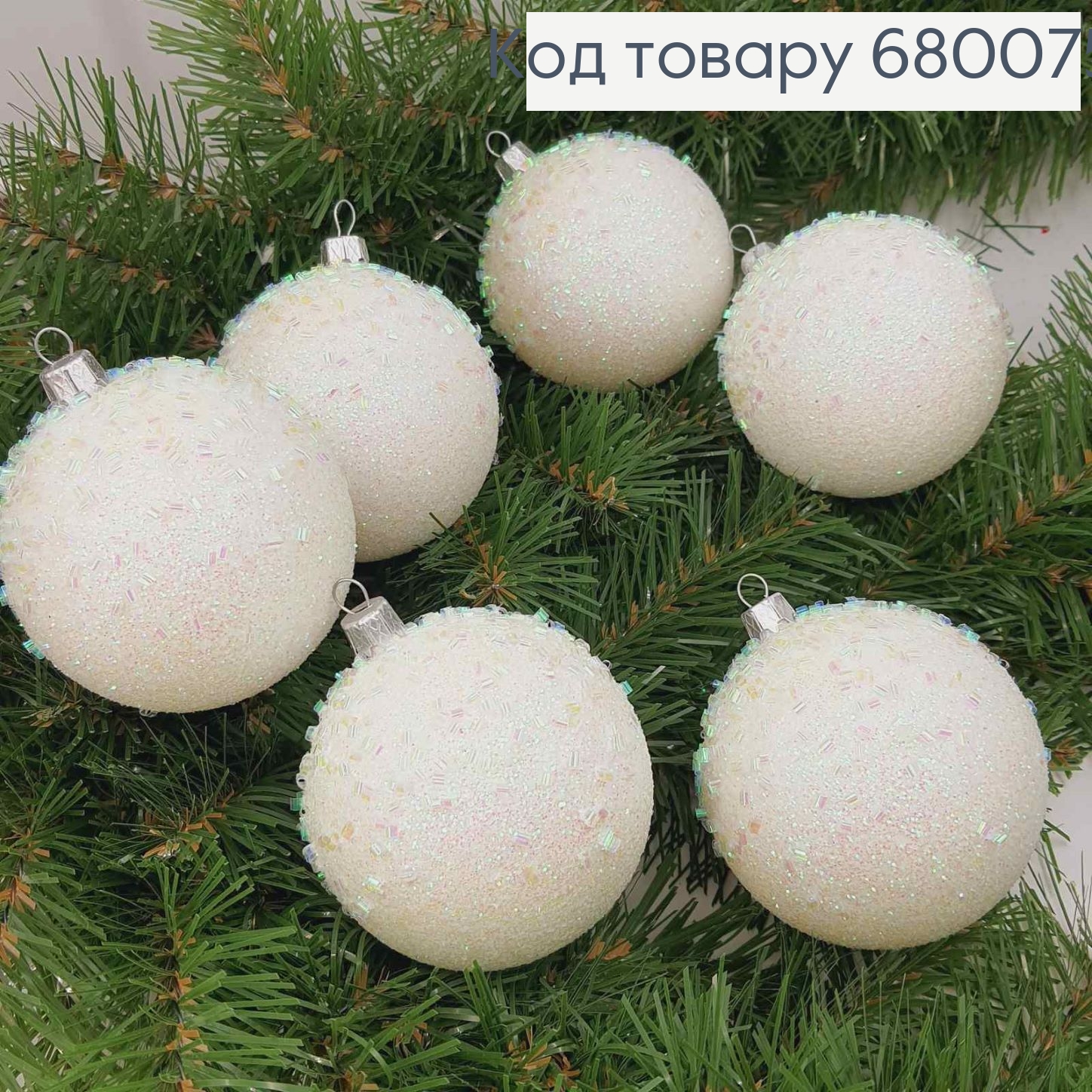 Набор игрушек 80мм (6шт) "ПАСТЕЛЬ+рис", БЕЛЫЙ цвет, новогодние украшения, пластик, Украина 680275 фото