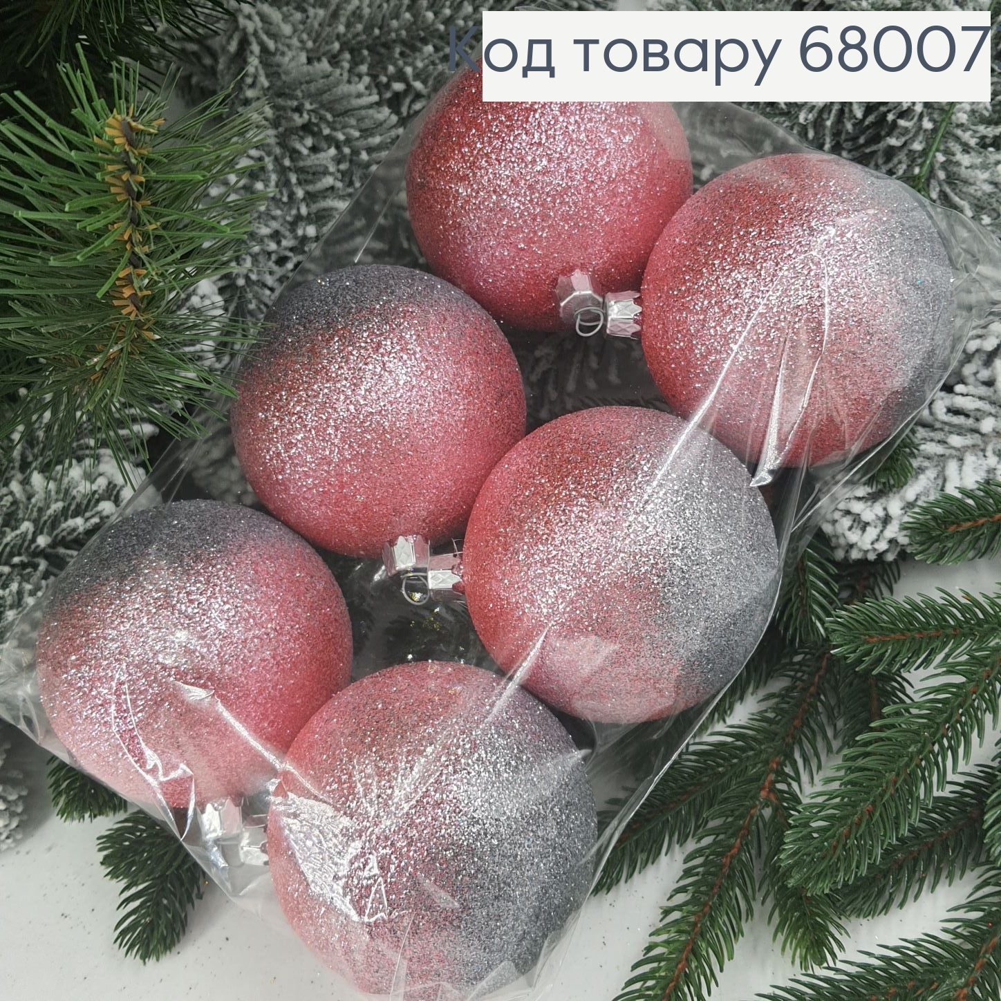 Набор игрушек 80мм (6шт) "ПАСТЕЛЬ +рис", РОЗОВЫЙ цвет, новогодние украшения, пластик, Украина 680276 фото