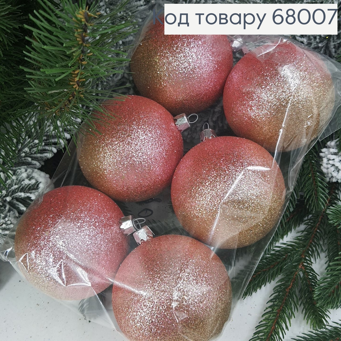 Набор игрушек 80мм (6шт) "ПАСТЕЛЬ+рис",КОРАЛОВЫЙ цвет, новогодние украшения, пластик, Украина 680273 фото