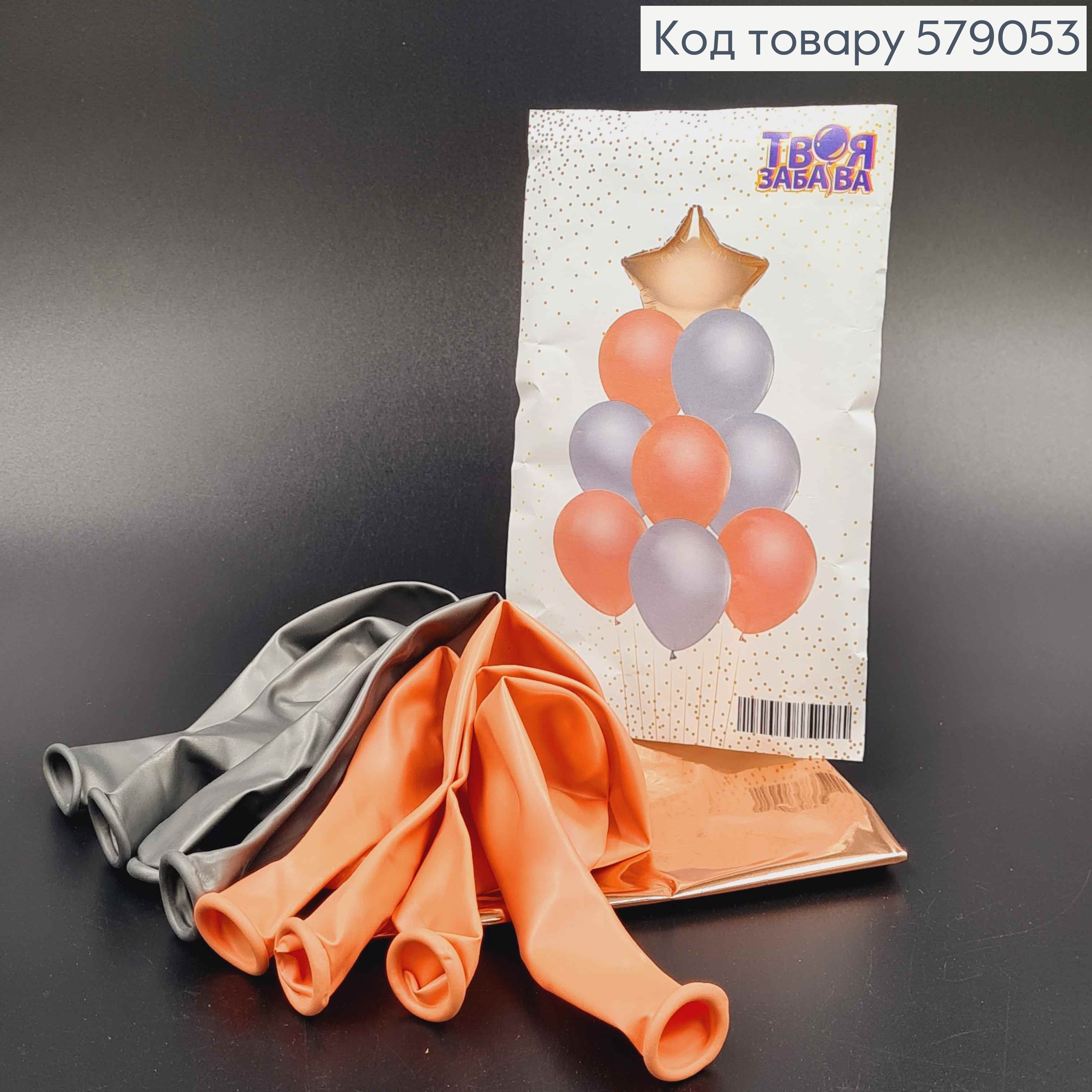 Набор шаров Бежевые и Серые, 1шт(фольгированное Сердце)+8шт(латексные), тм Твоя Забава