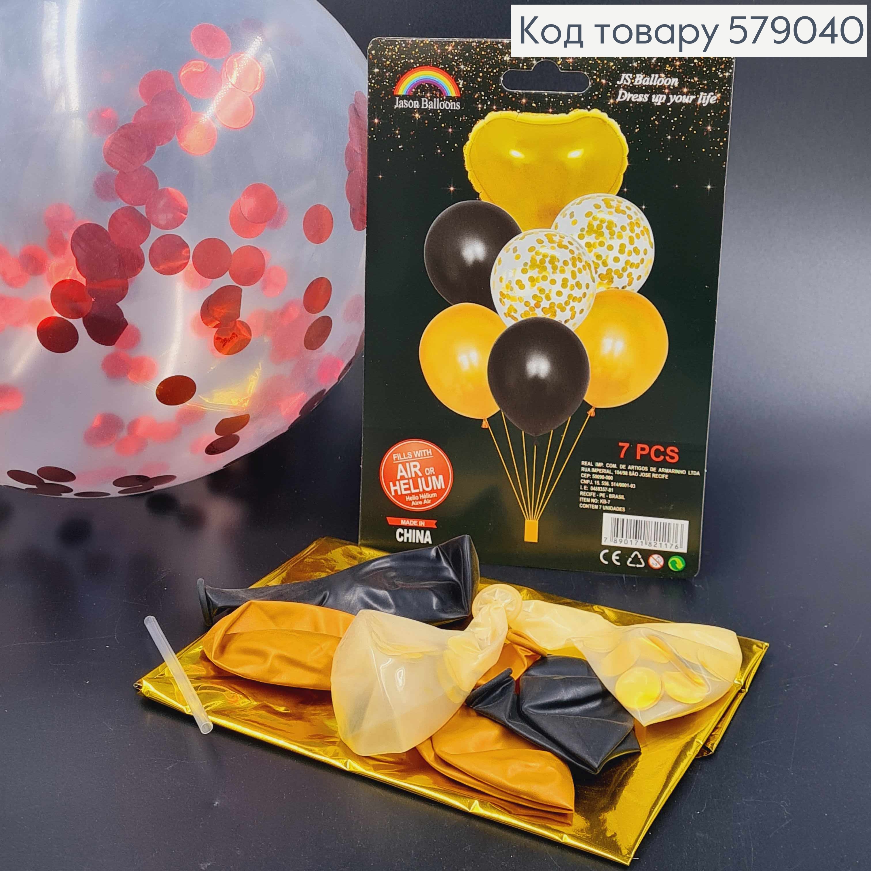 Набор шаров Чорные и Золотые, 1шт(фольгированая Сердце)+6шт(латексные)
