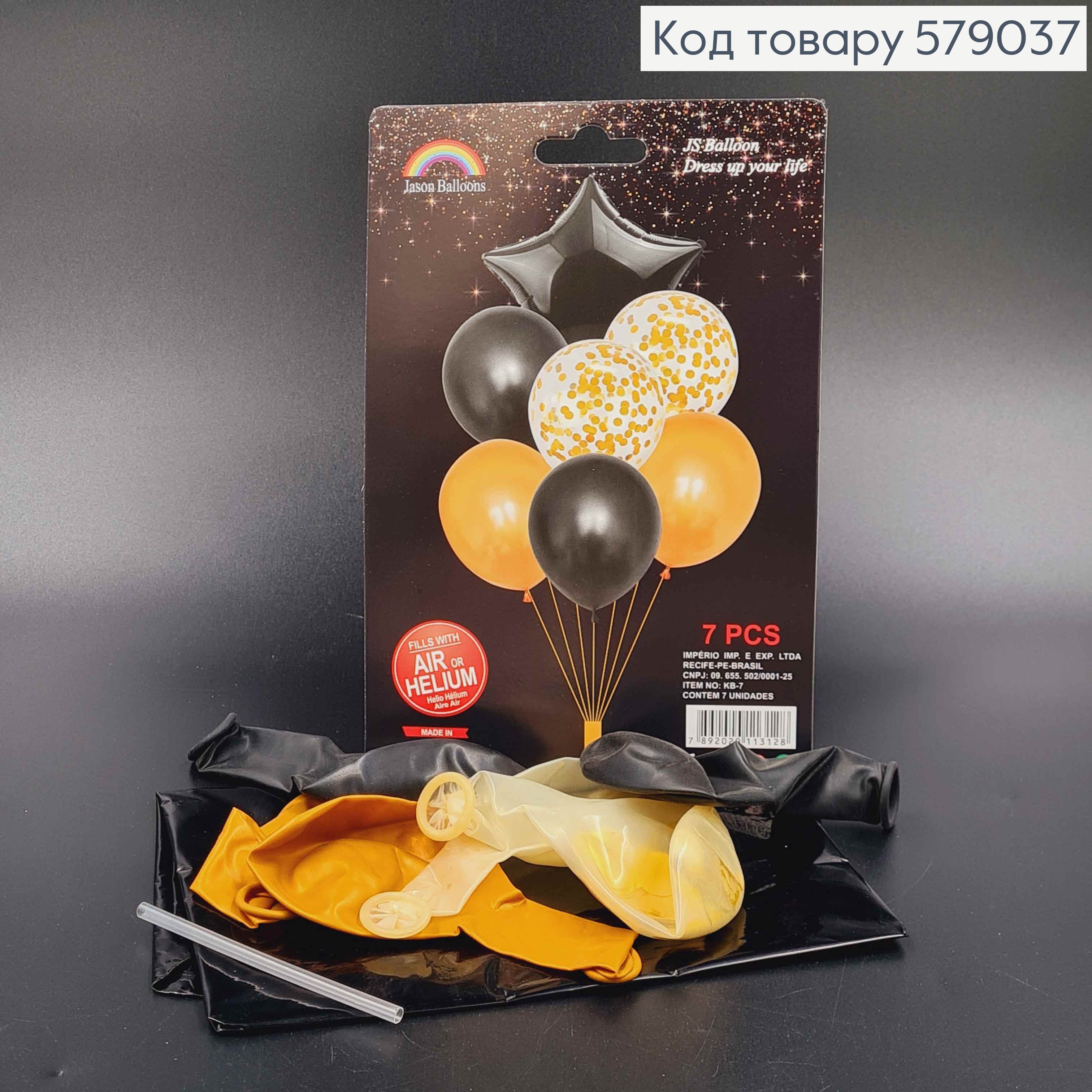 Набор шаров Чорных и Золотых, 1шт(фольгированая Звезда)+6шт(латексные)