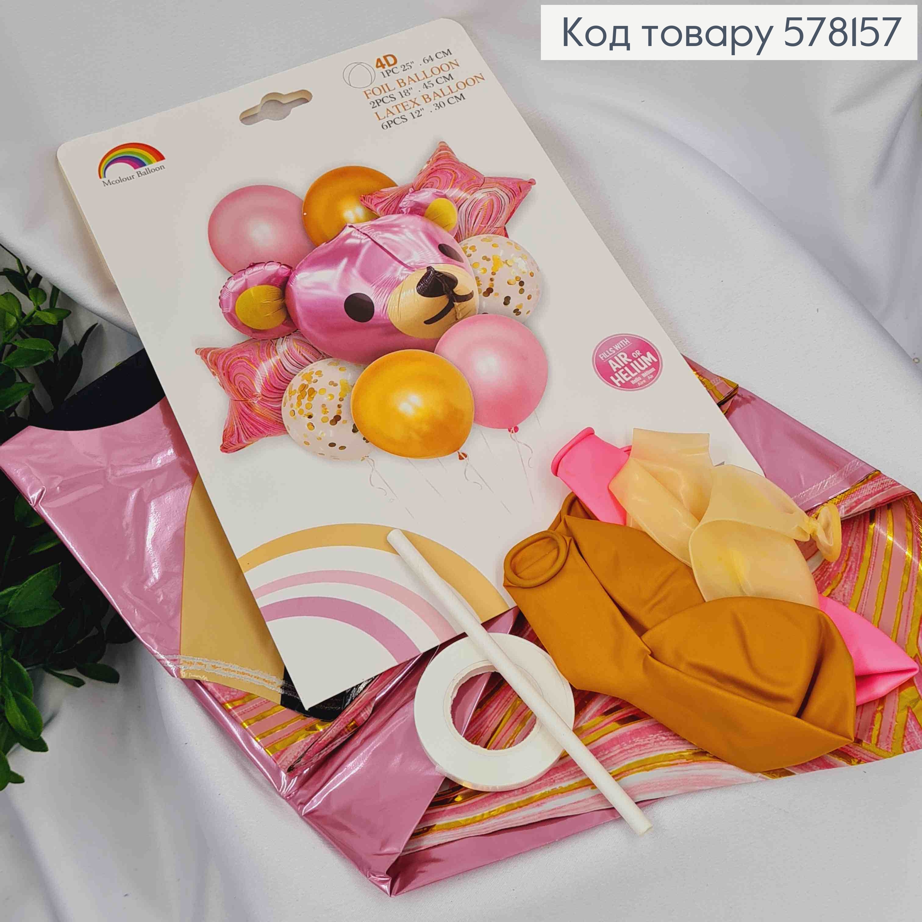 Набор шаров розовый "Медвежонок", 1шт(фольга 4D), 2шт(с наполнителем), 4шт(латексные)