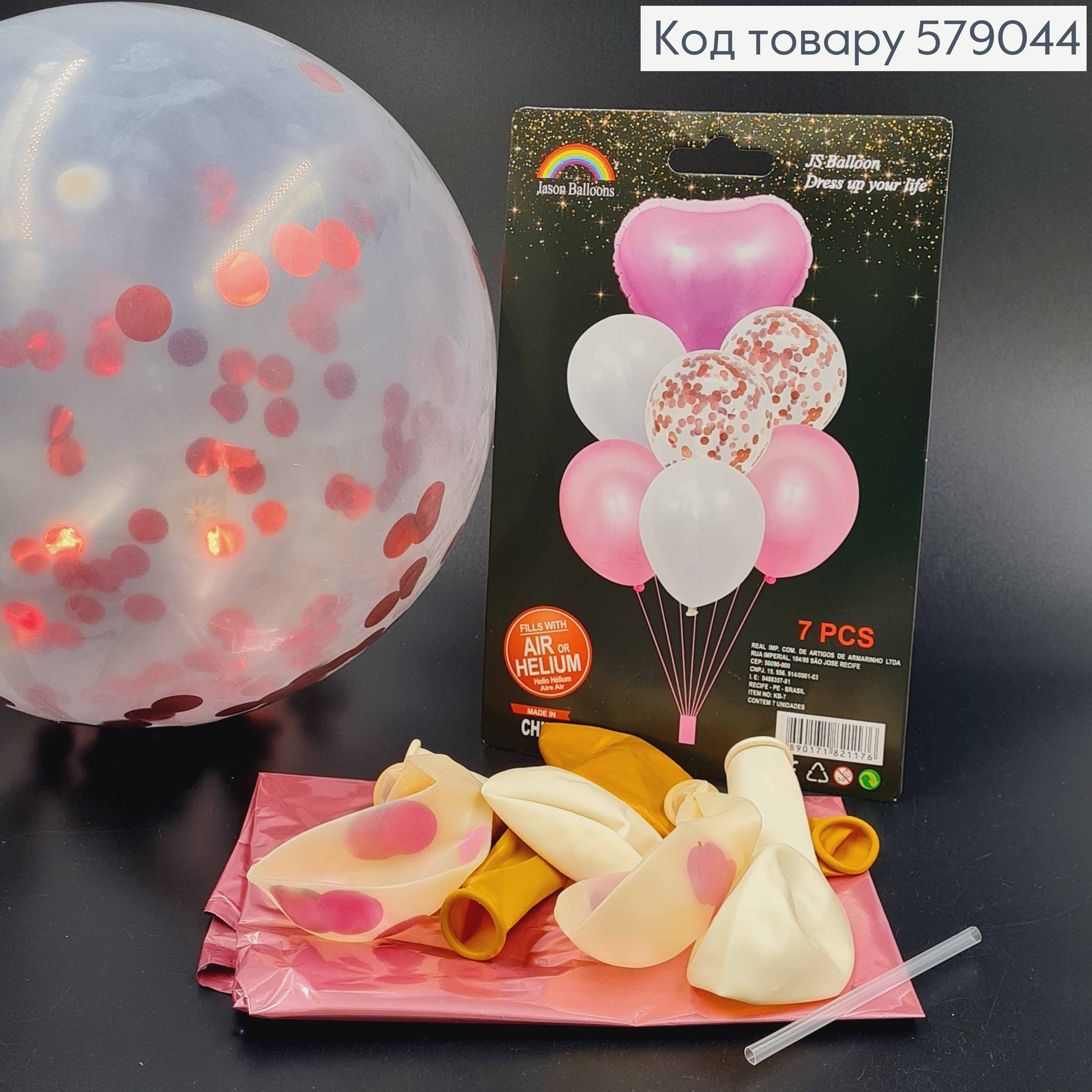 Набор шаров Розовых и Золотых, 1шт(фольгированая Сердце)+6шт(латексные)