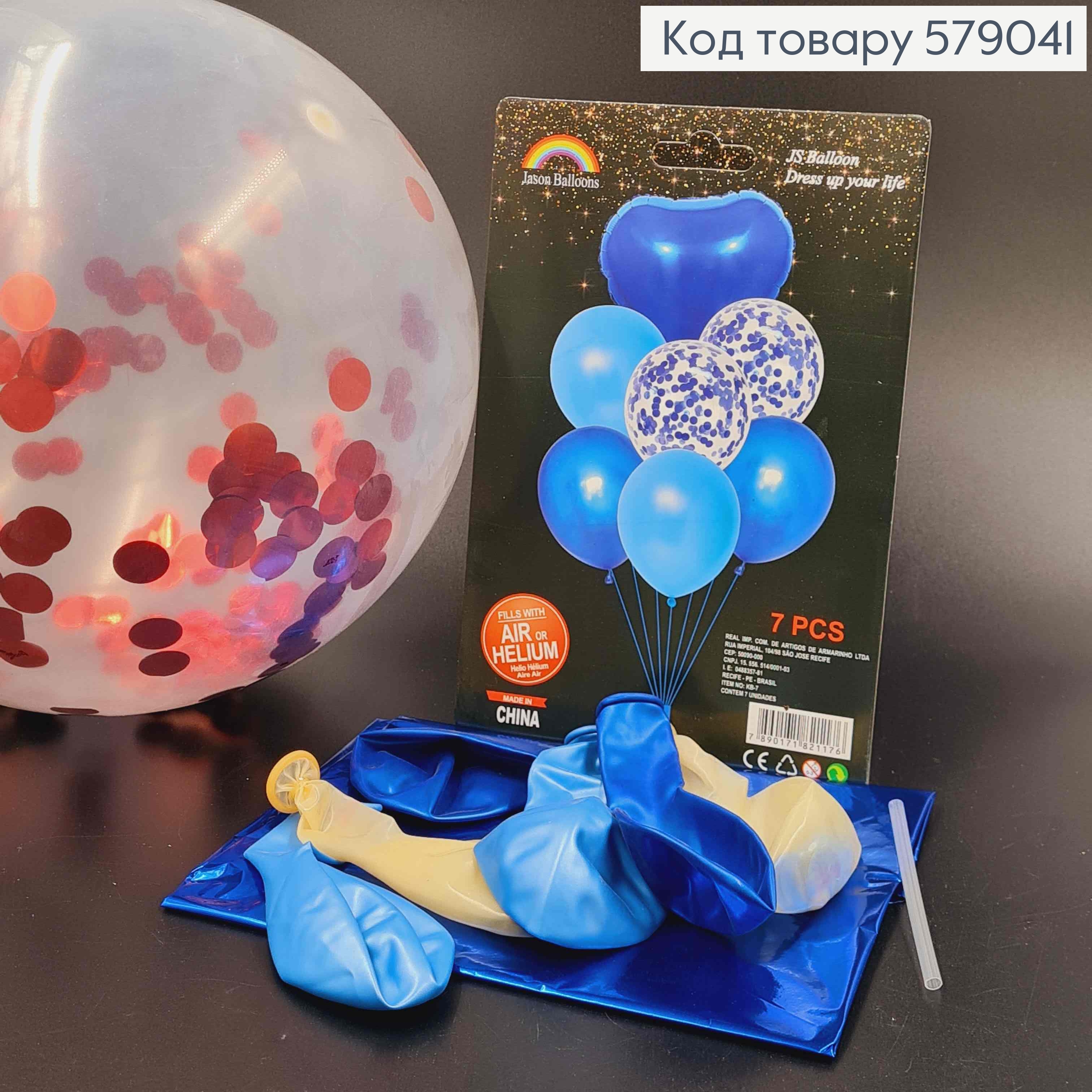 Набор шаров Синих, 1шт(фольгированая Сердце)+6шт(латексные)