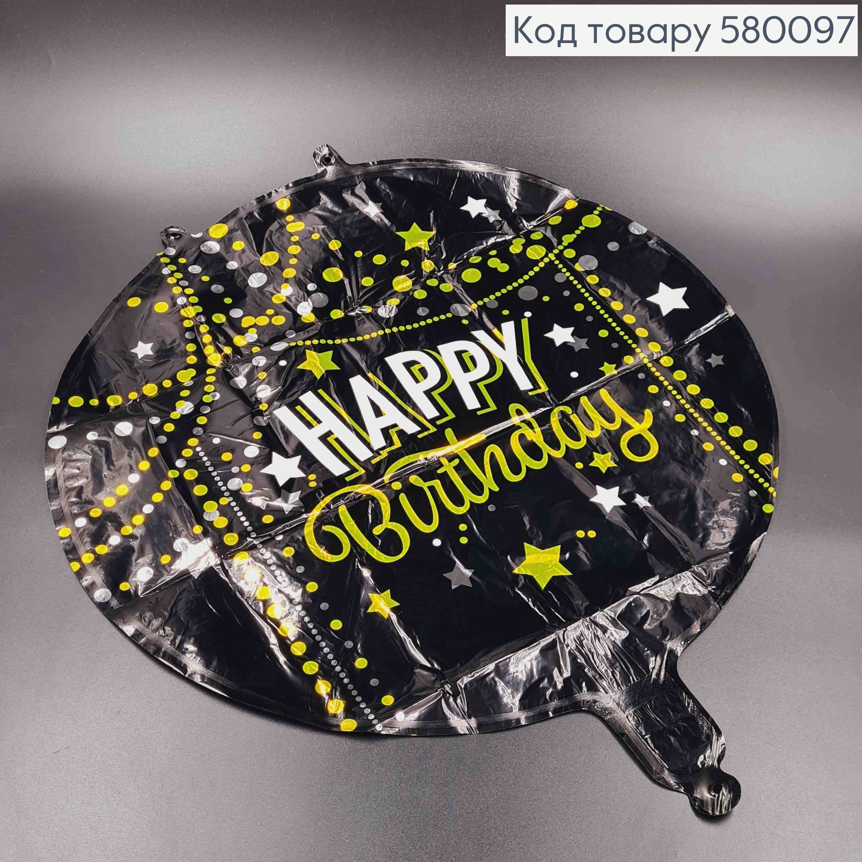 Набор шариков фольгированных, 5шт., черные в золотой горошек и звездочки, "Happy Birthday", 18"(45)см