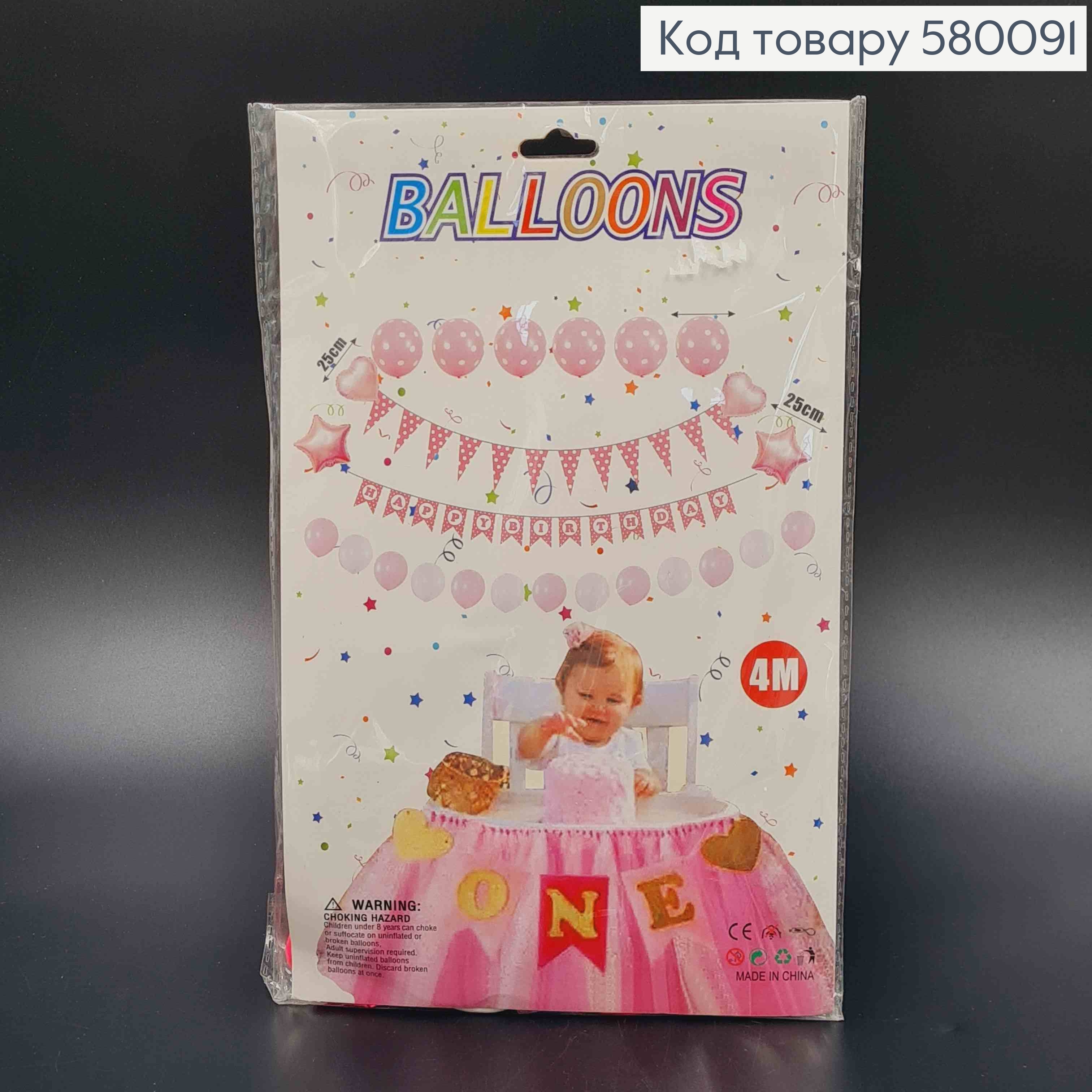 Набор шариков латекс и фольг., в розовых тонах, + Гирлянда "Happy Birthday", и флажки бумажные