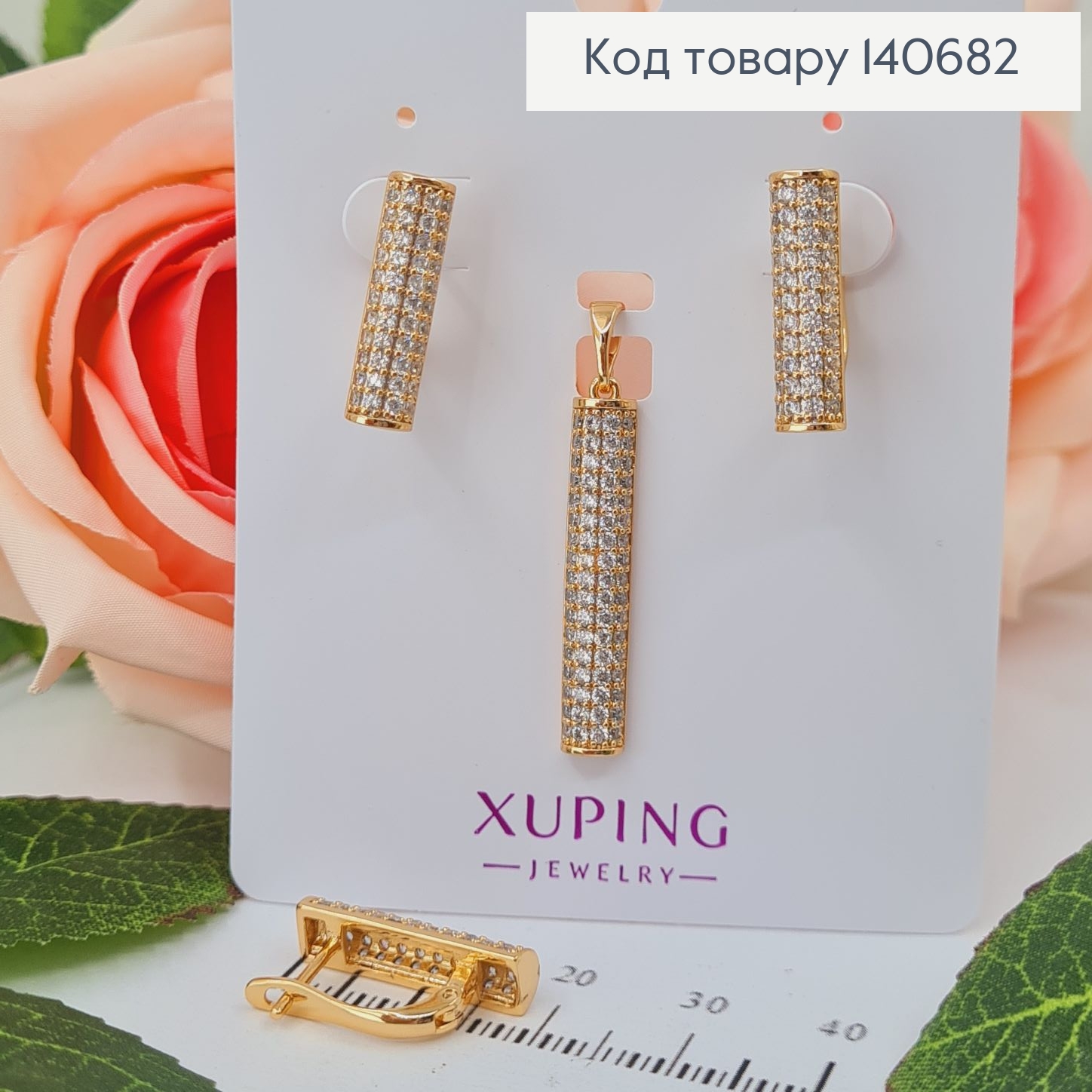 Набор кулон Пластинка в камнях 3*0,5см, сережки (англ.застежка) 2*0,5см, Xuping 18К
