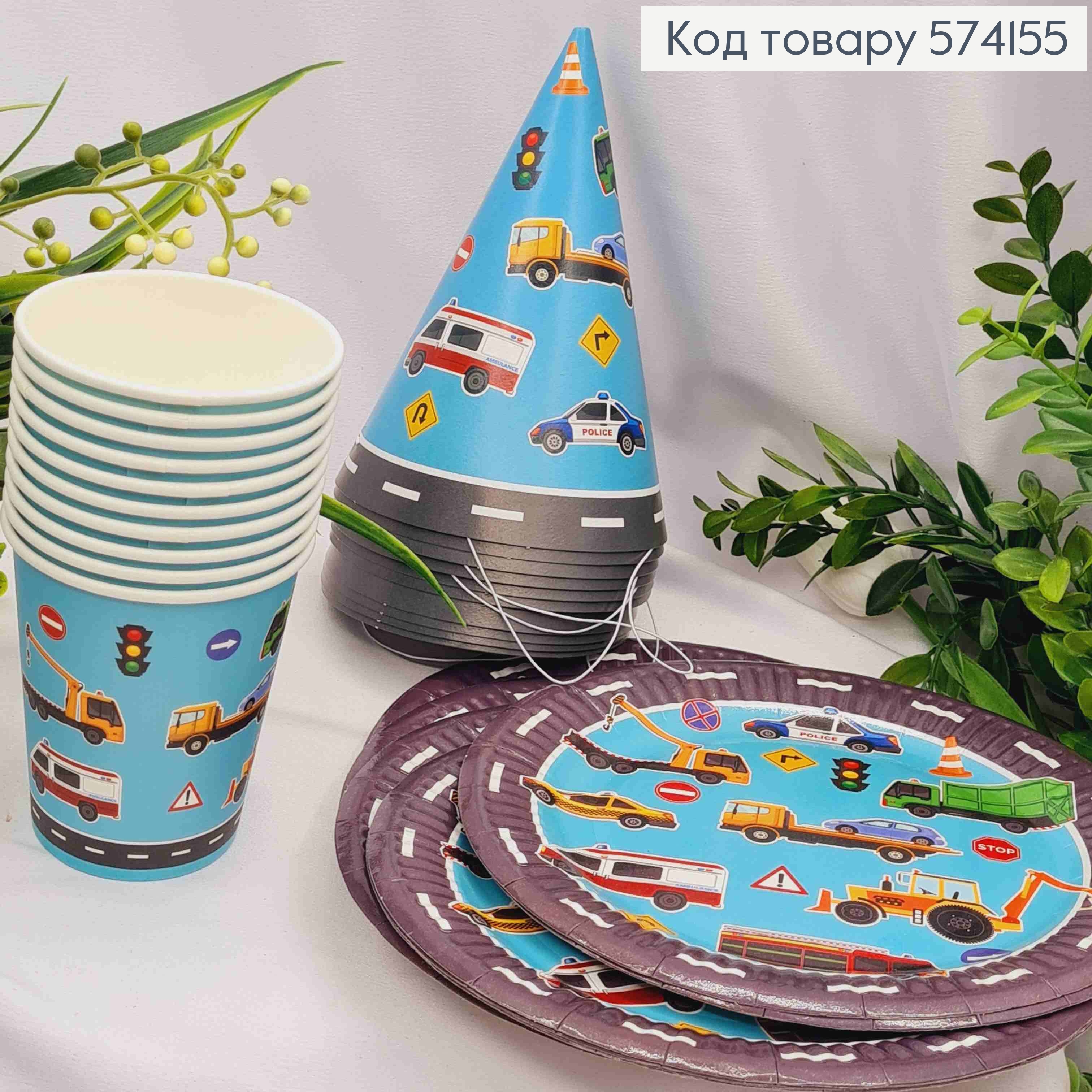 Набор бумажный, праздничный, с "Автомобилями", по 10шт стаканчиков, тарелочек, колпачков, Украина