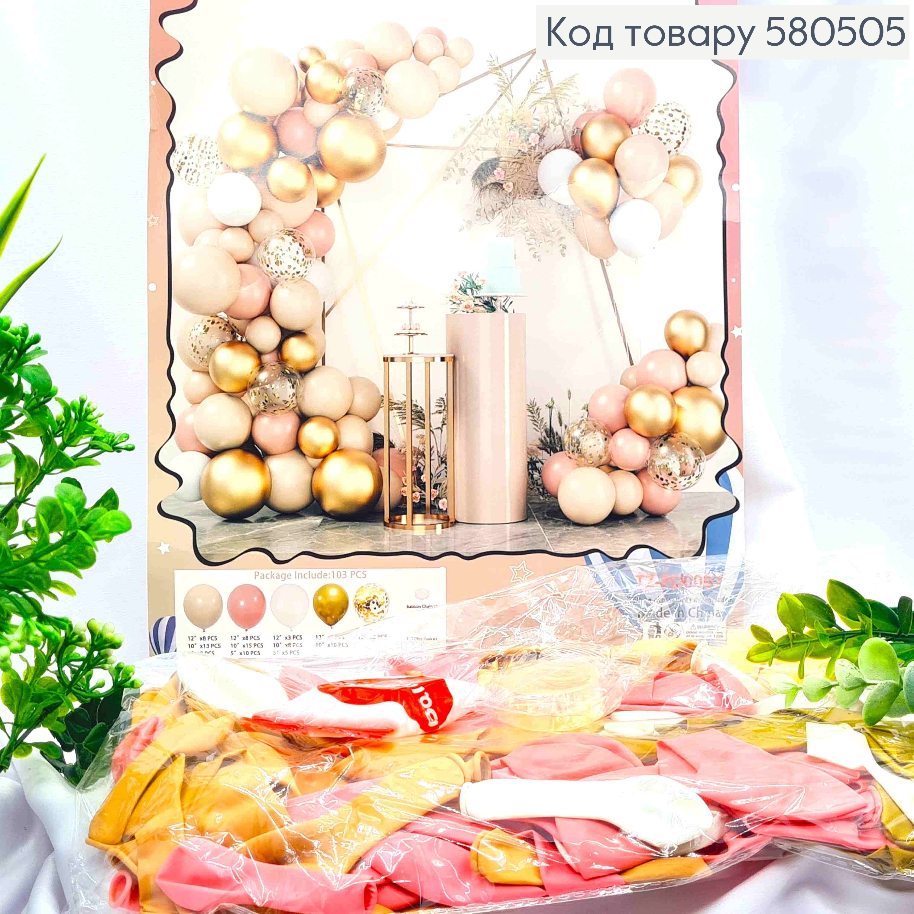 Набор воздушных шаров "Фотозона"ПАСТЕЛЬНО-ЗОЛОТЫЕ",103шт(12",10",5")+2ленты